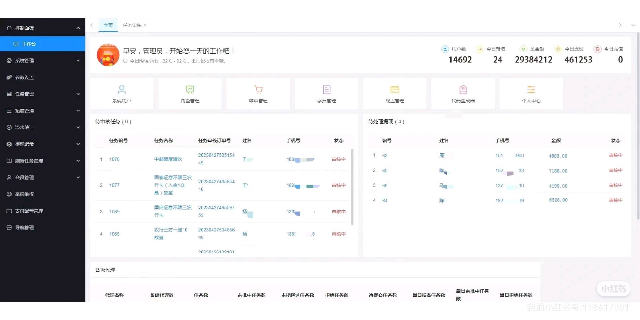 三、成熟后台系统,任务立返,T+0结算,数据每日反馈,实时审核,每笔任务审核次日表格反馈结果,且可查渠道结算结果,做到真正良心透明