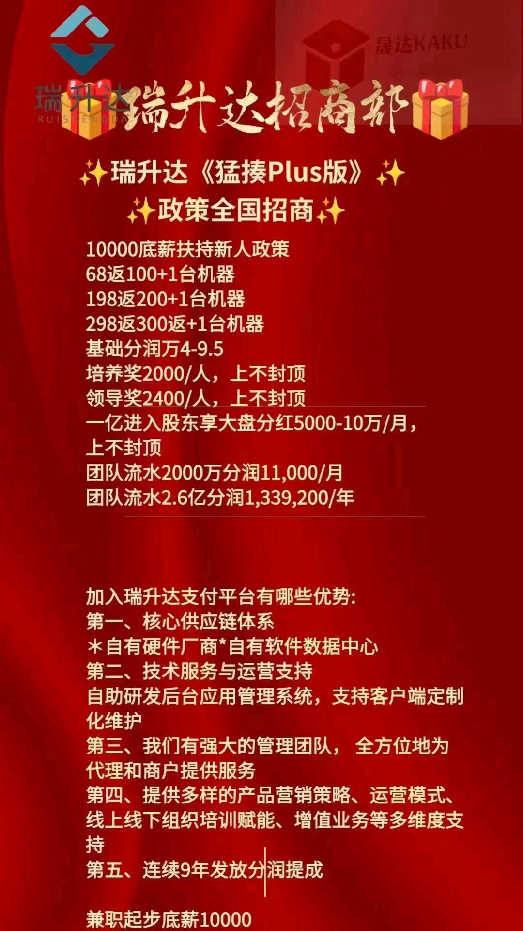 瑞升达全新3.0模式,10000底薪扶持新人政策,10年老平台,诚邀全国天下英雄