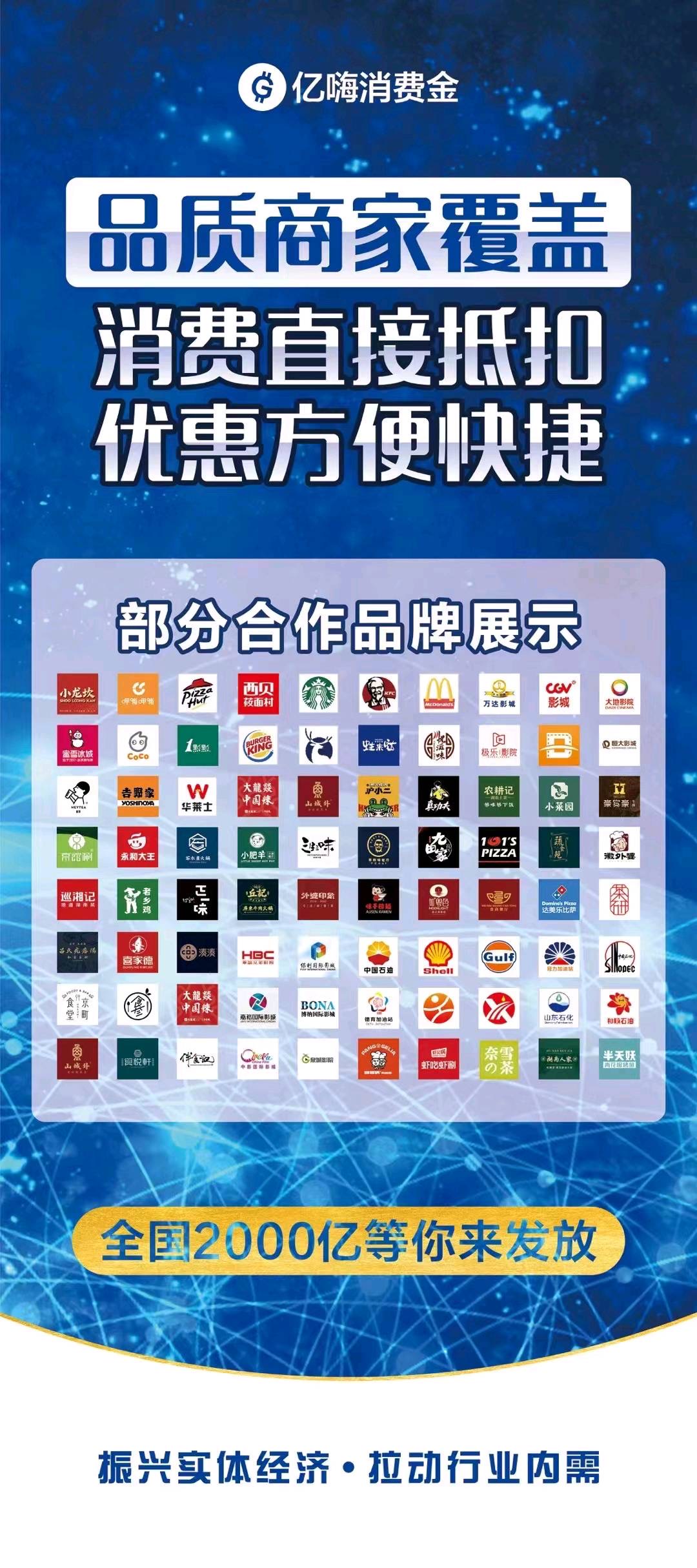 亿嗨消费金一中嗨控股集团联合多位大型品牌餐饮创始人共同打造。全国首家(集采+预储值) 实体消费折扣服务商,采用极好营销方式(免费送10000元消费金+大力度折扣+极简使用)使用户黏性极强政企合作,刺激消费、振兴实体经济,亿嗨消费金将成为大消费领域下一个独角兽。