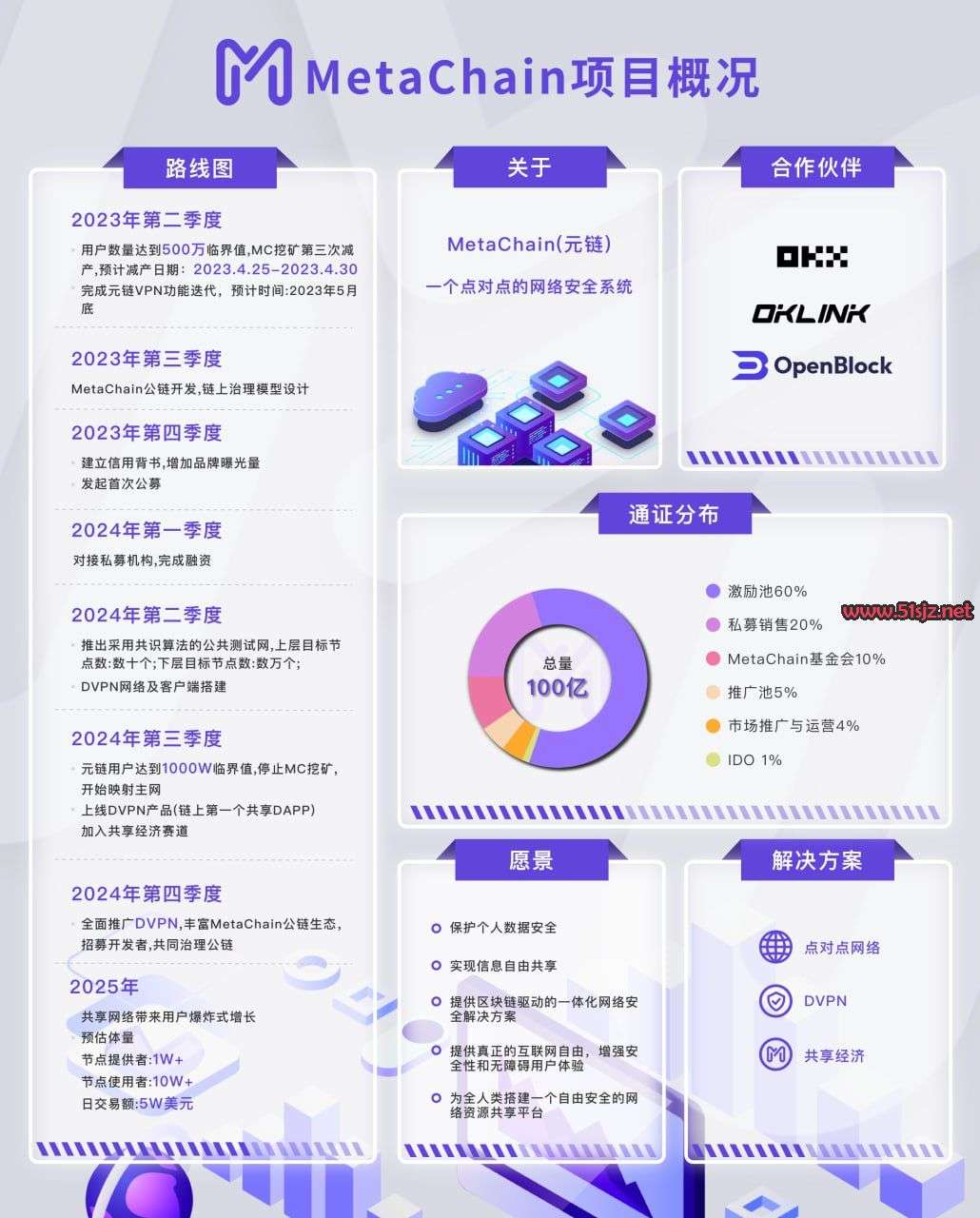 MetaChain(元链)公布最新一页纸,内容包含项目路线图,及减产预估时间,代b 分布等,详情查看图片。