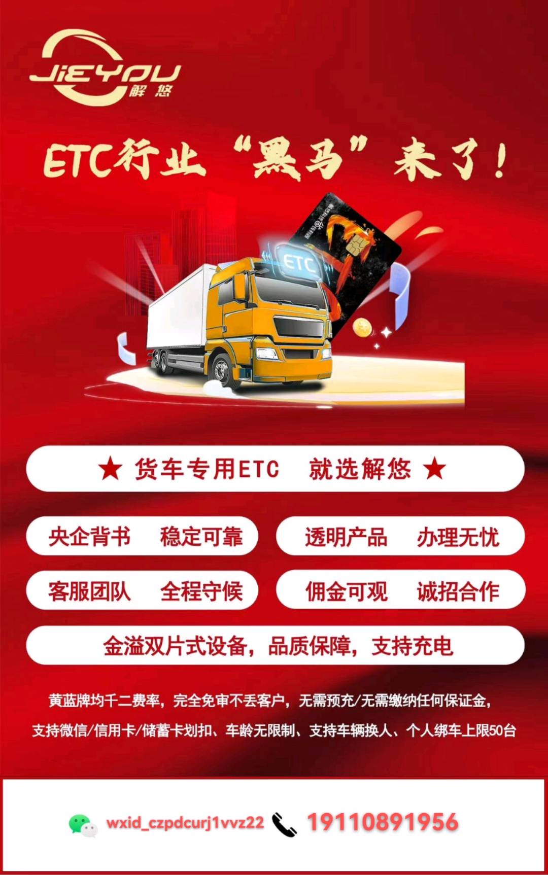 全国ETC代理解悠货车ETC公司直招一手单