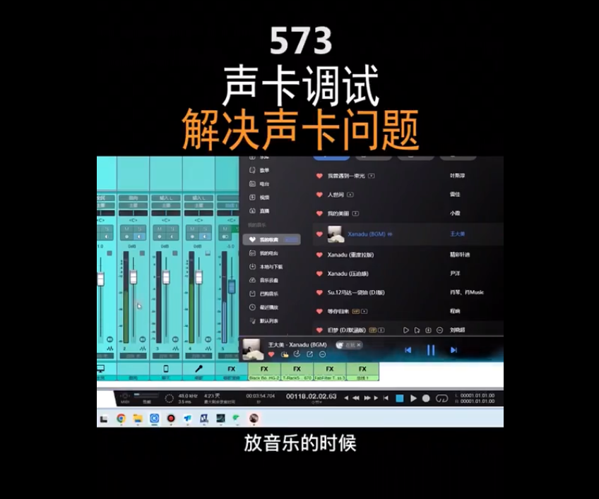 大一点,然后这个时候把机架关掉,我让他走这个调音台的就不走机架。然后咱们再重新放一遍,因为这个时间的原因,不给大家测试时间太长,因为这个我的声卡跟你们的不一样,你们可以测试一下自己的声卡去测试就行,然后改变你播放器的通道去听,按照我说的看机下跳不跳,如果不跳能听到就是走的咱们正常声卡的通道。