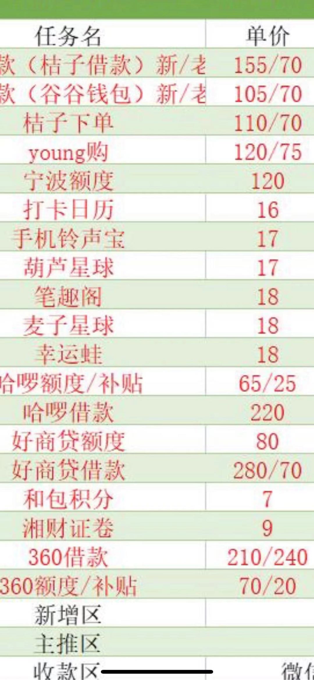 2: 长期稳定的一手渠道资源,高佣金,任务全面有日常应用、简单注册、试玩类型、购物消费、金融额度银行、证券、认证绑卡类;等等。。总任务数有300款!更多任务请+V咨询
