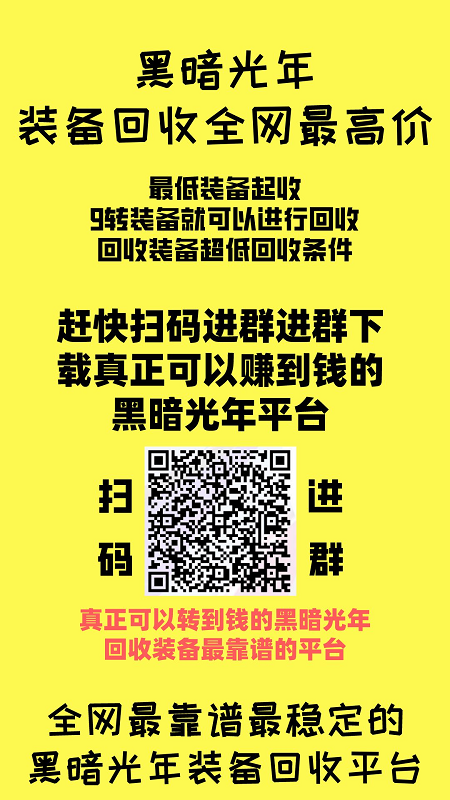 正文 黑暗光年APP 现阶段装备回收价格最高 门槛最低的平台 q18548025545 V评论者 /2023-05-27 09:00:01 /2657 阅读 0527 黑暗光年APP是一款比较老牌的传奇打金类赚钱平台了,相信很多小伙伴都玩过,但是其他平台的回收门槛都是比较高的,并且单价很低,不过我们这一款黑暗光年和其他平台的黑暗光年很不一样,在此款平台中拥有超低的装备回收门槛,并且回收的价格也是非常到位的,回收十分钟内就可以到账支付宝,到账速度也是相当快的,回收装备一件起手,信任度也是拉满的。1.微信或者浏览器扫描下方二维码进行注册下载。2.平台装备回收表。3.QQ扫描下方二维码进行官方回收群。