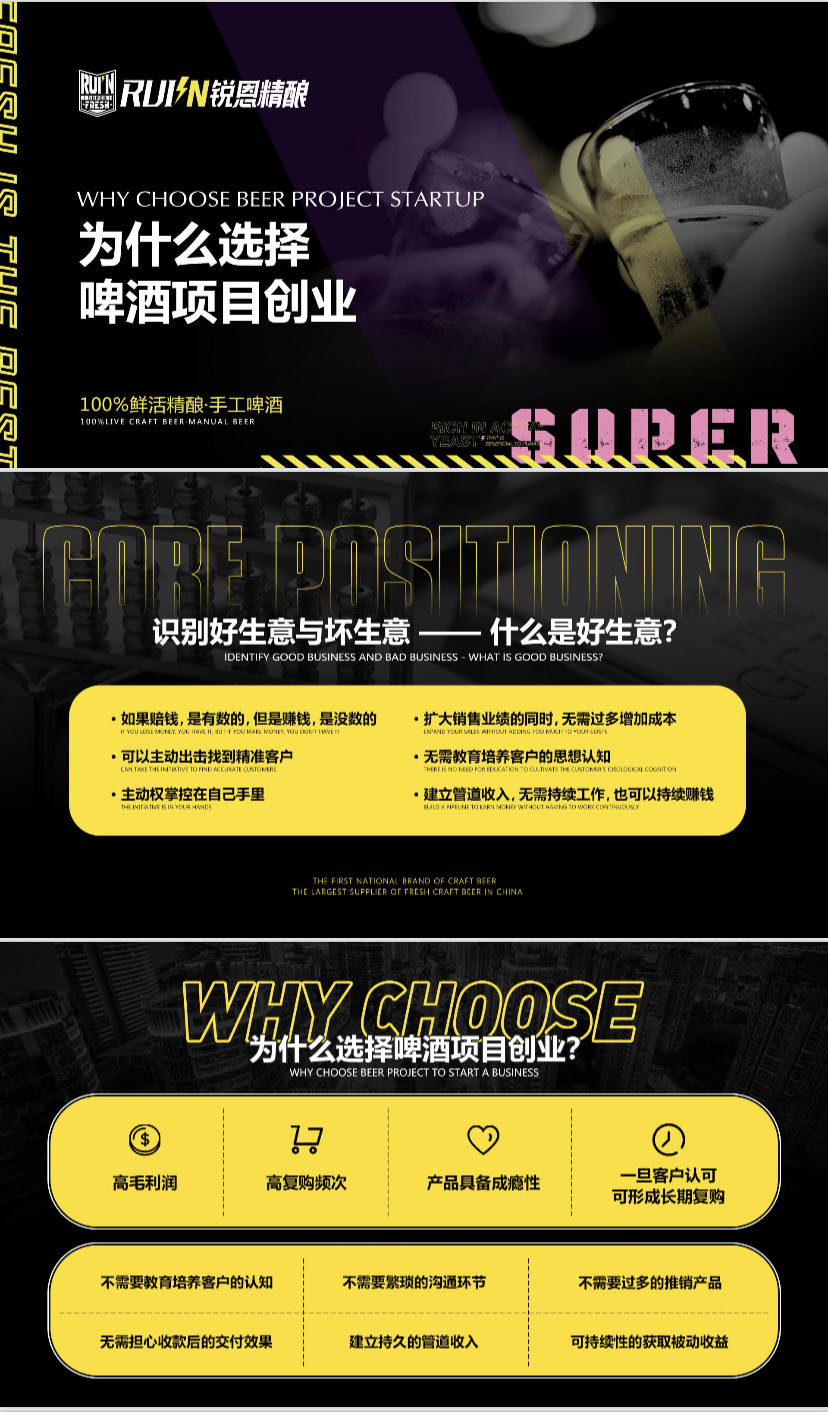 正文 锐恩精酿啤酒+寻求合伙人 地推平台哪个好 V评论者 /2023-06-04 10:04:09/4.24 K阅读/0评论 0604 锐恩精酿啤酒项目介绍2021年公司投入市场,产品在目前市场上极具竞争优势,目前每月合作商家15000家起,由于前期疫情影响,今年开始全面开放招商,具体请v联系合作要求有快消品经验,有自己团队或有渠道推广收益利润管道被动收入费用说明可选择0费用创业扶持培训系统支持,商务培训