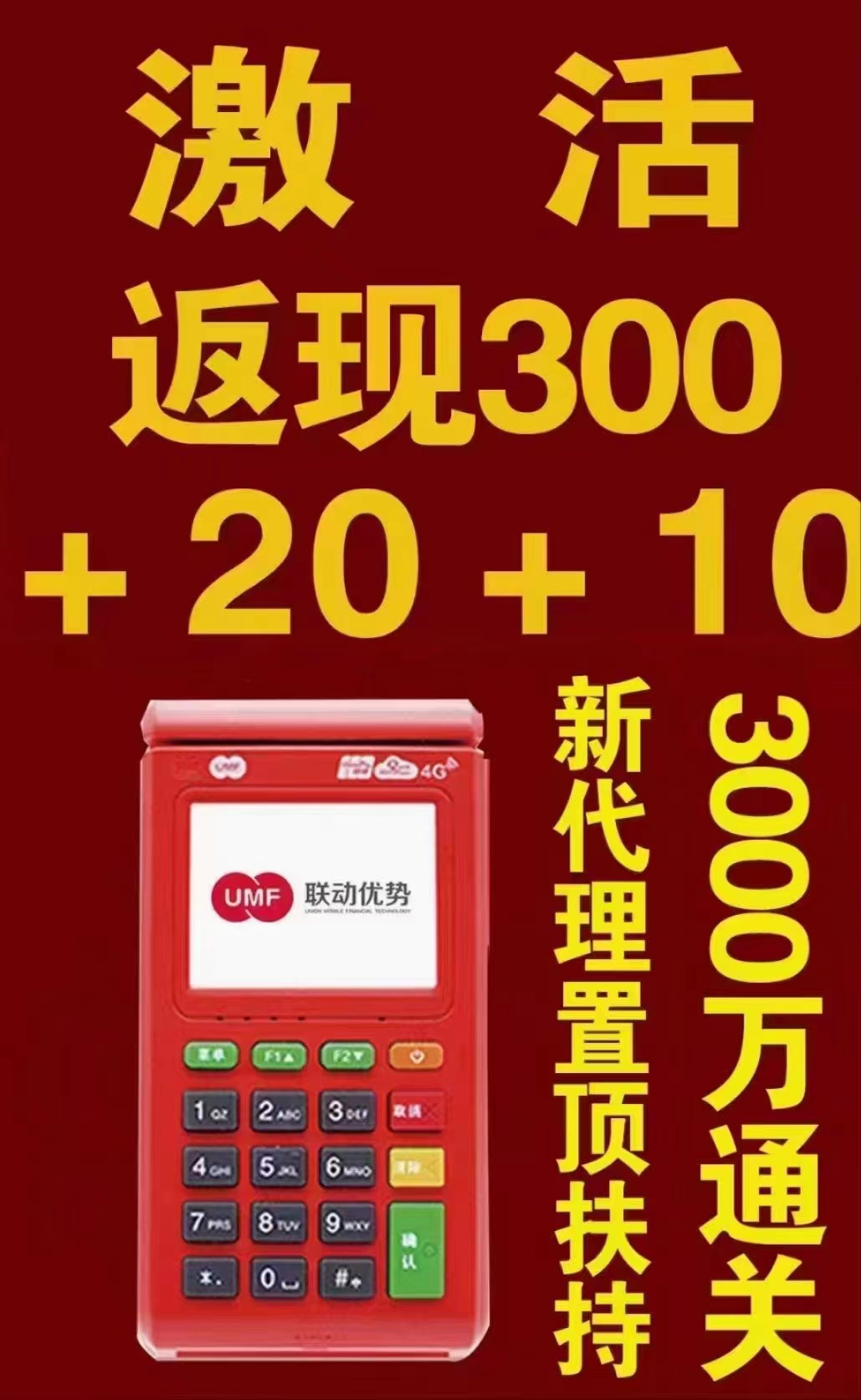 1、主动收入:开机奖励,每开一台POS机,公司奖励300元。次日提现!