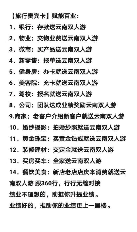 2、旅游卡可以作为高价礼品、促销、回馈客户、员工福利
