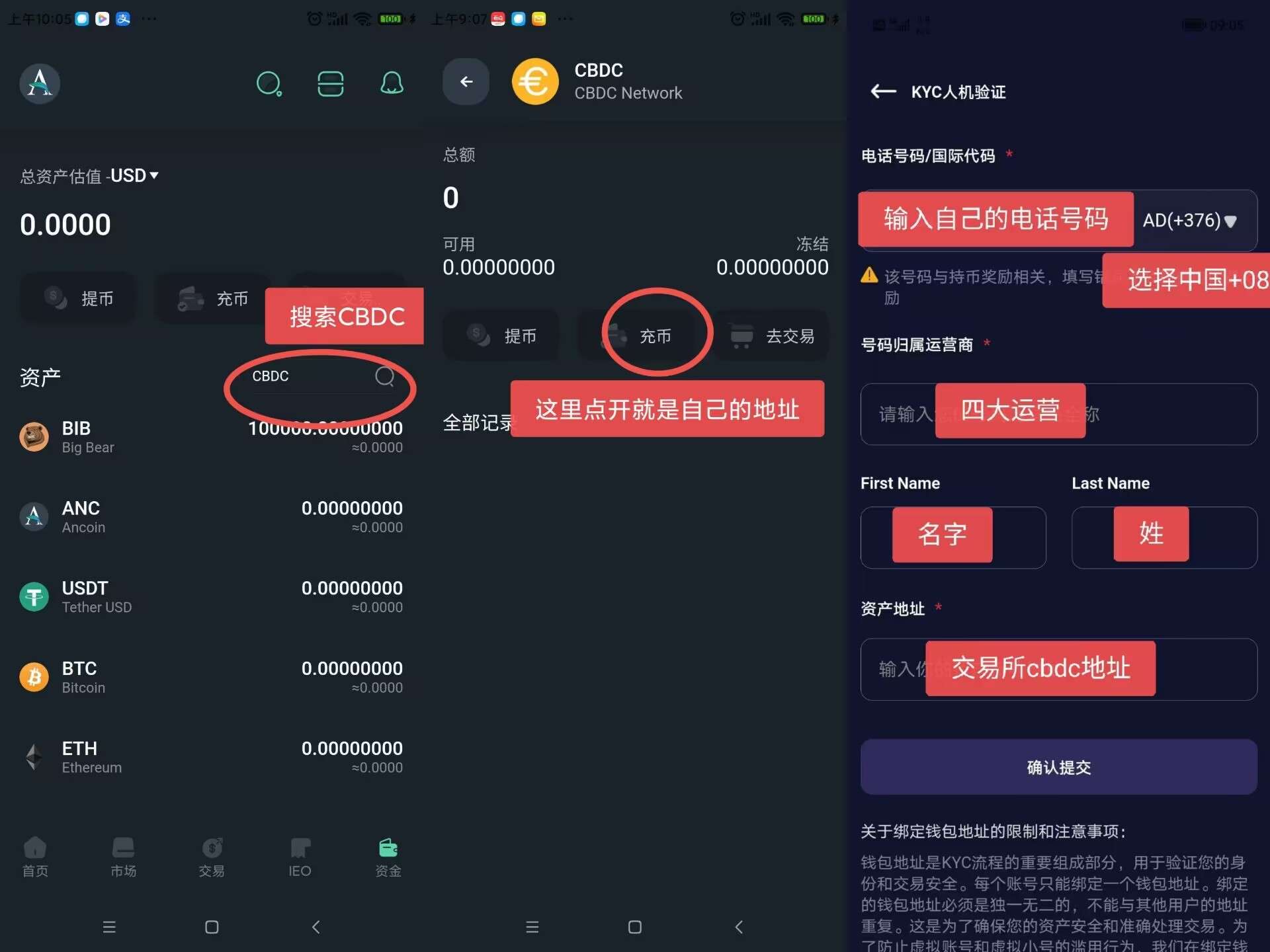 2:用到账anc平台的u挂单买anc,然后把买到anc提到cbdc平台里你就有手*费 了,