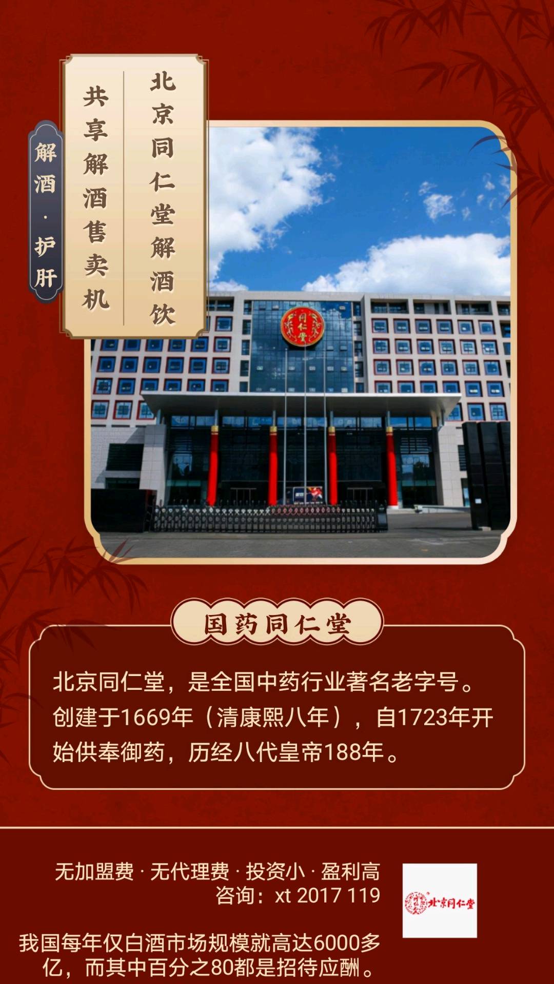 我们提供北京同仁堂解酒饮品,售卖机,资质证明,后期服务等等