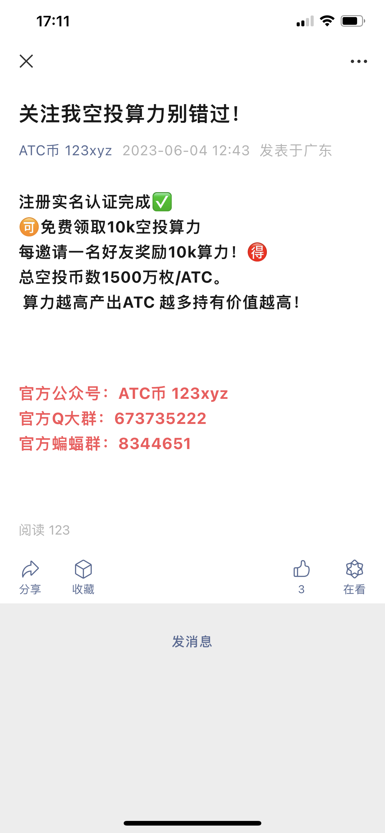 首码ACT.注册实名认证领取10k空投算力,每邀请一名好友送10k空投算力,算力越高,产出ATC越多,目前价值0.3usdt一枚,每24小时领取一次,不然将暂停空投产出!目前就几百人注册!