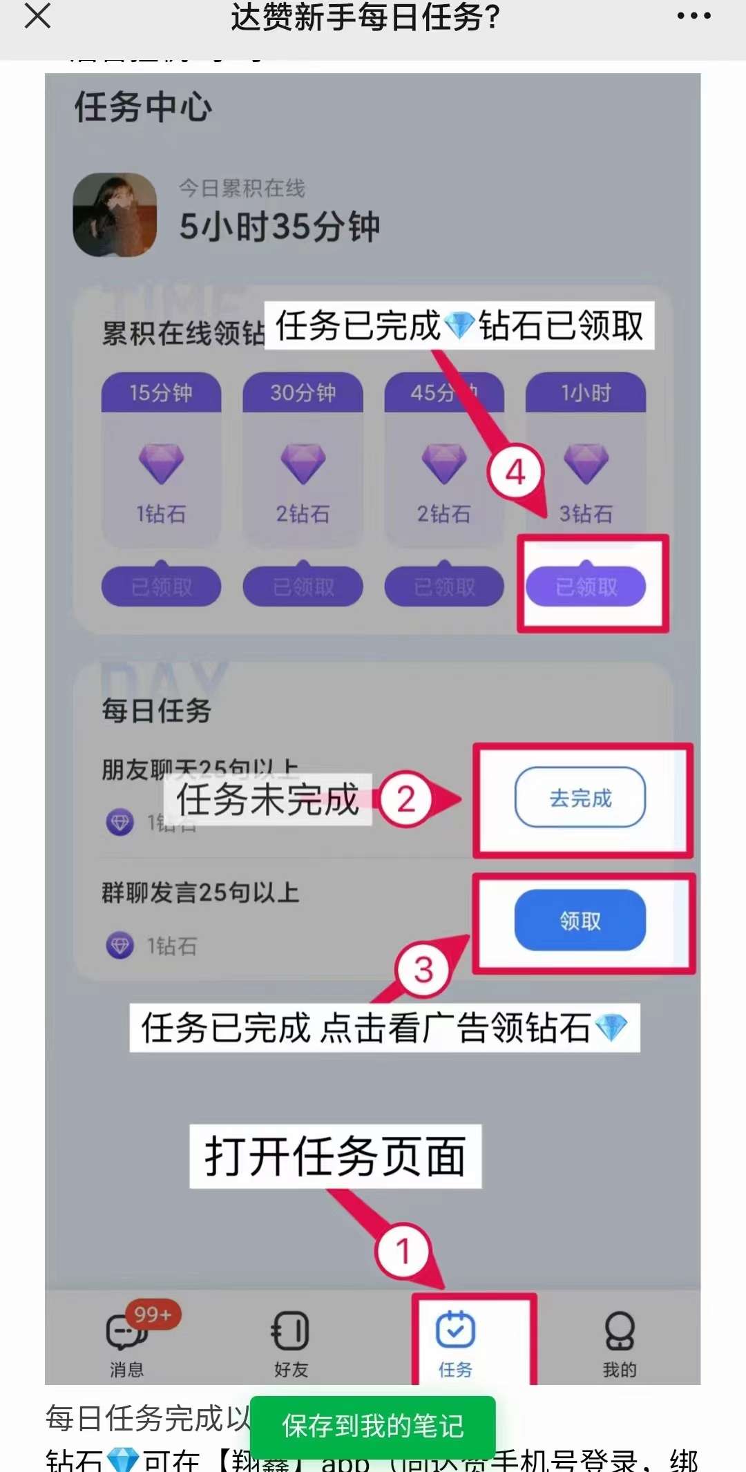 达赞的每日任务内容:①私聊25句话②群聊25句话③后台在线一小时