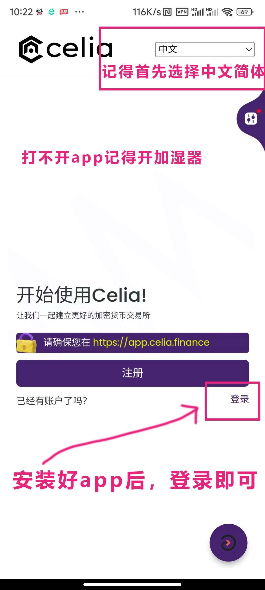 1.注册链接(需要开加湿器):https://app.celia.finance/register?referral_code=733HQECLT