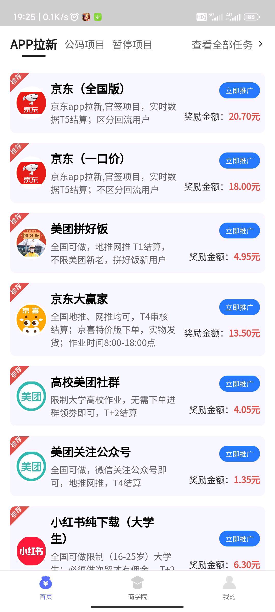 正文 APP拉新,拒绝割韭菜 app推广接单 V评论者 /2023-06-15 13:03:27 /2177 阅读 0615 动推app佣金价格高额佣金价格透明可见,数据可查结算方式每款APP拉新结算时间不同可自选,有t+1,t+2,t+3,t+4,t+5结算方式,最高t+5结算操作流程平台接任务,直接线上线下拉新人用户资源需求团队优先,个人可做重点要求执行能力强没有执行力的勿扰!何必浪费各自时间特别说明诚信合作,不割韭菜,不收加盟费