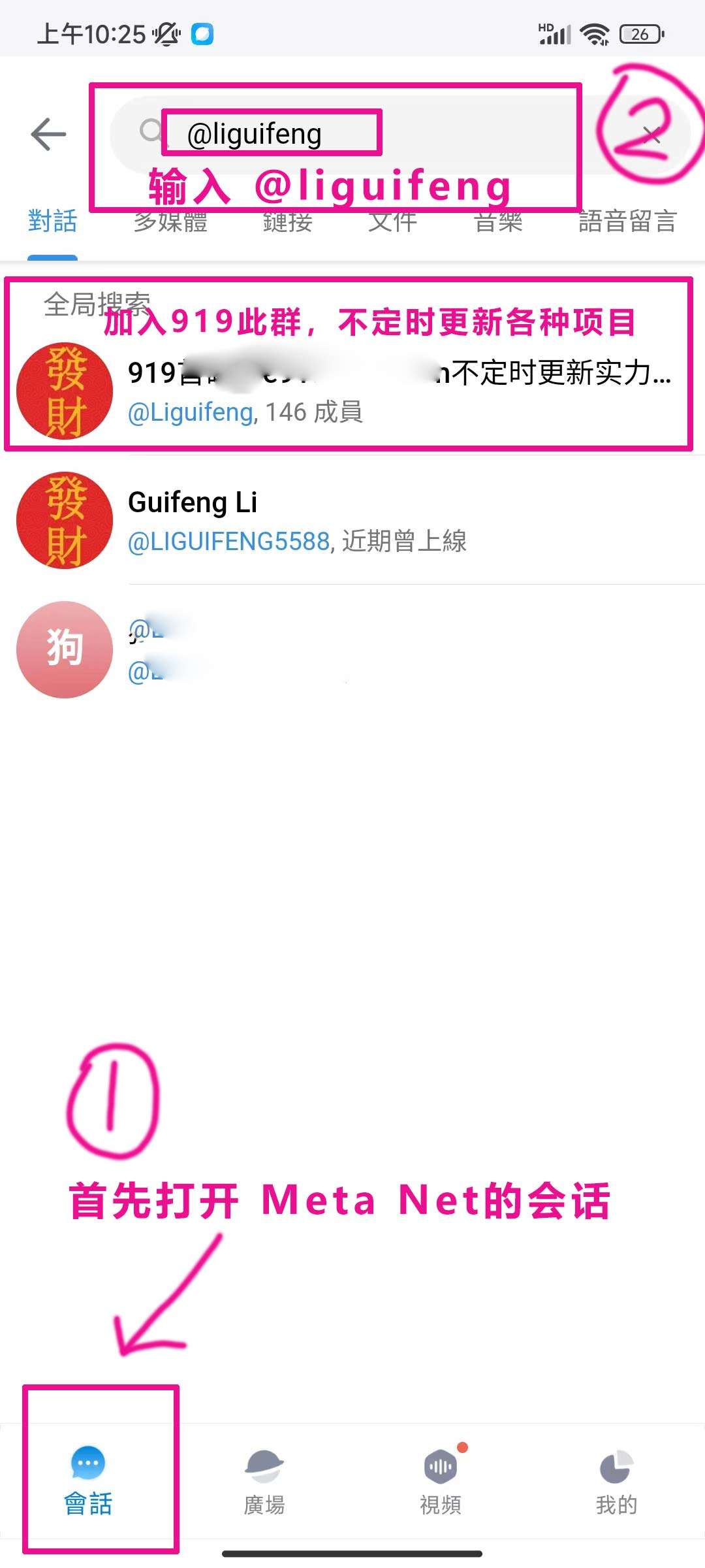 注册好后,打开飞机软件,加919群,先开加湿器加群:https://t.me/Liguifeng (后续登录用MetaNet 免加湿器)