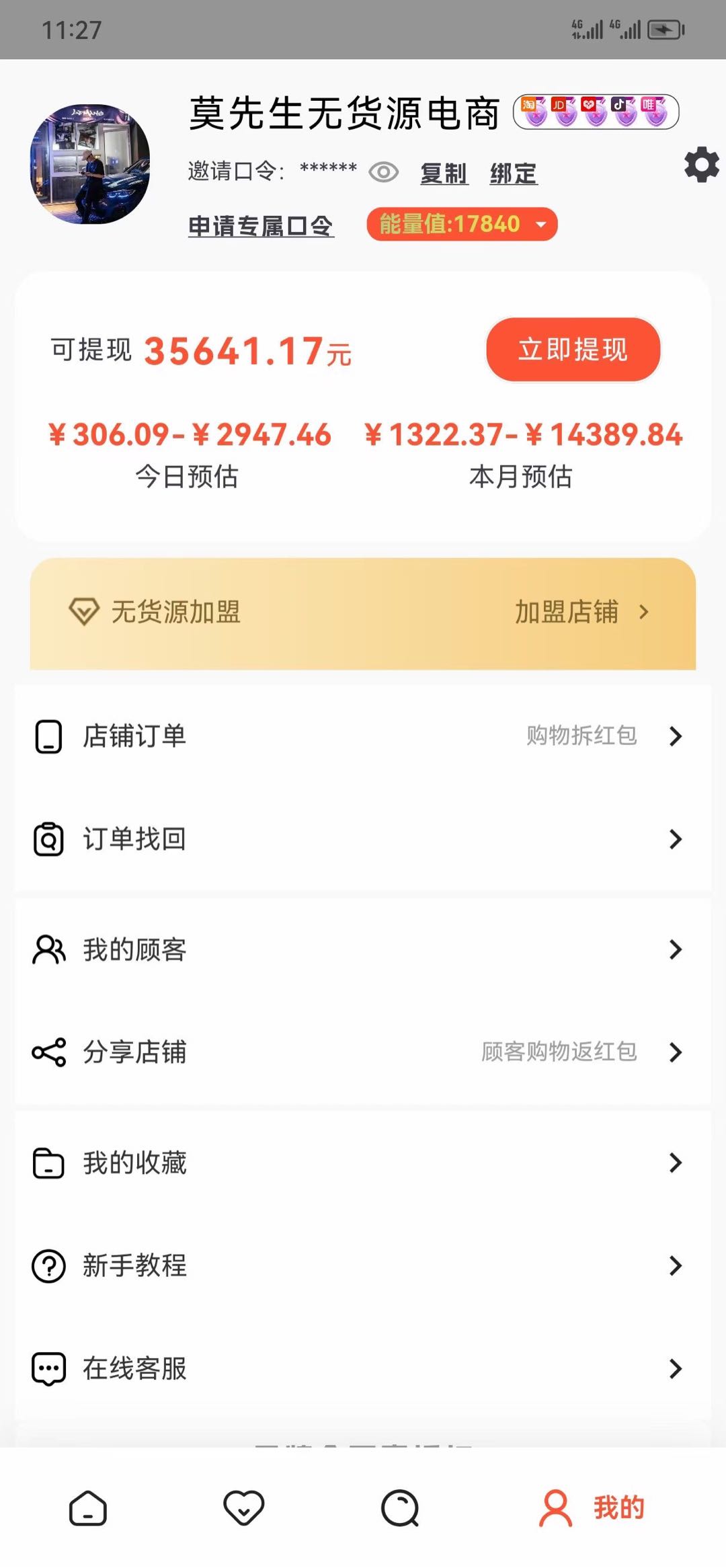 一个购物返利平台(全网最高返利),然后也是最新的无货源电商平台,自己购物可以省钱可以拆红包,也可以付费开通店铺成为店主