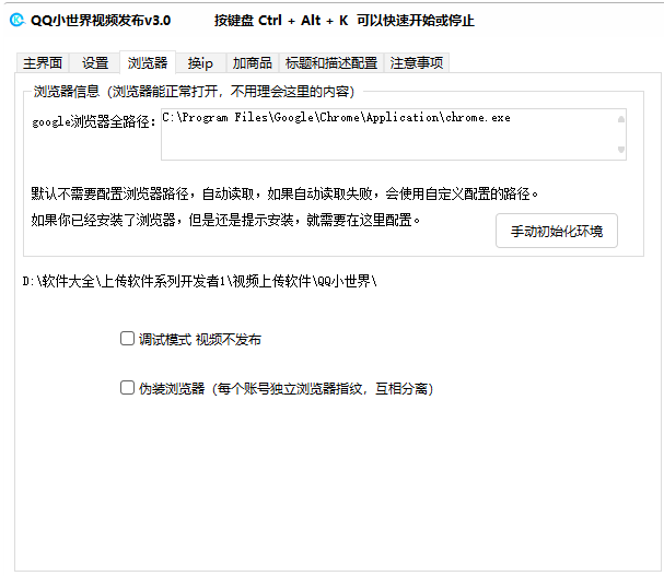 好的,我们来看一下 QQ 小世界如何实现自动化上传。这个面板其实跟我们之前很多软件都是类似的,包括说微信视频号,包括说其他的种种。那么老规矩就是你需要下载一个谷歌浏览器,如果说你第一次使用的话,点击这里它会跳转到谷歌浏览器的官方的下载地址,然后正常下载安装就可以了。嗯,然后在这里如果说你先安装的不是默认目录的话,你需要把谷歌浏览器属性,然后把它复制,然后粘贴在这就可以了。那如果说你本身这个谷歌浏览器就是安装在默认目录,那你这留空也是可以的。然后我们直接点击启动,那么跳转到这里是一个正常的一个登录,登录的一个页面,登录一个页面,然后我们可以用手机 QQ 点击扫码,能不能陪我过去?稍等一下,我扫一下。