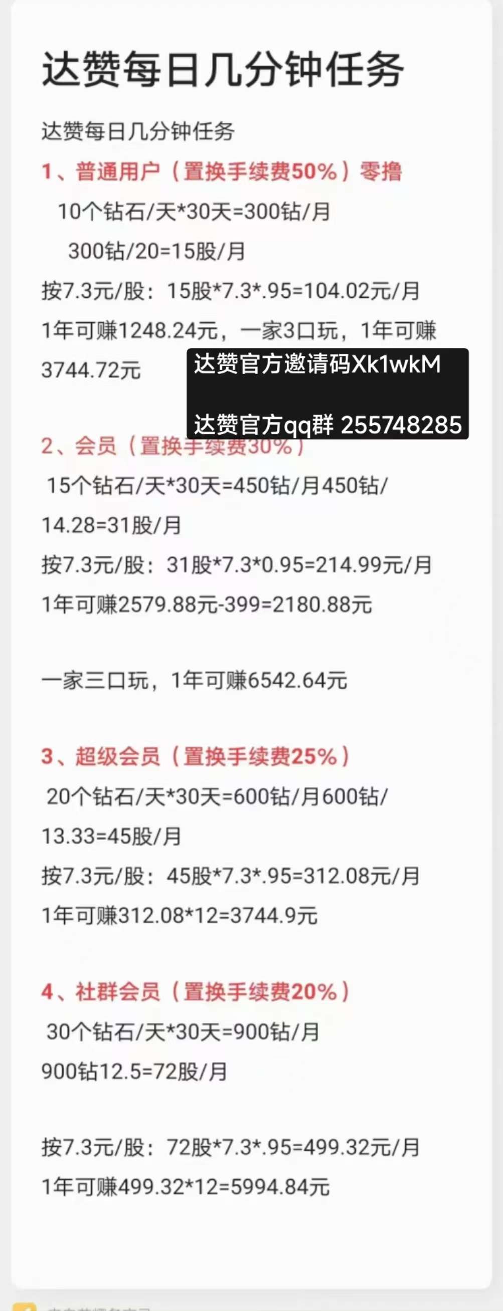 达赞最强0撸,静态每天3-4,满一股7.03即可变现,不复投不下车。