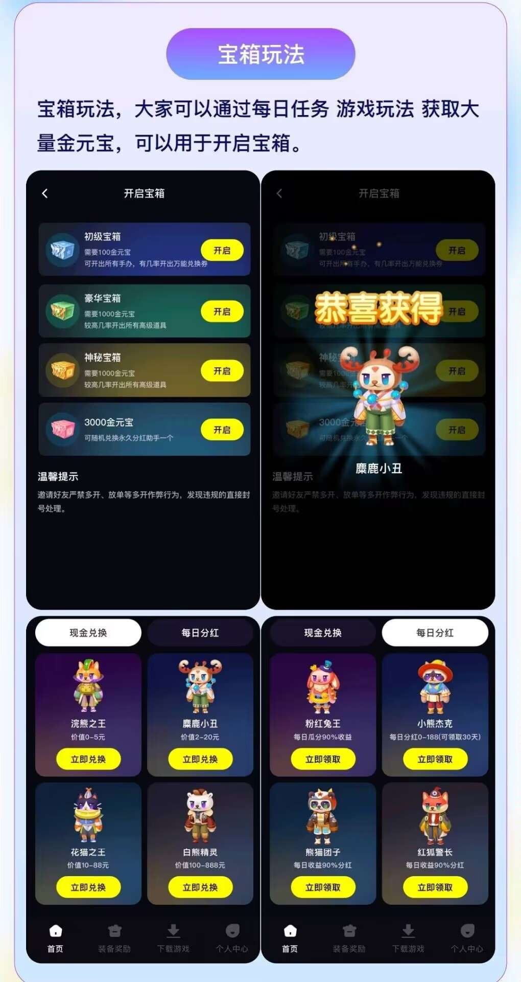 主要货币分为金元宝、金豆、零钱。金元宝可用于开启宝箱获得大量零钱,金元宝。零钱不用多说直接提现即可。