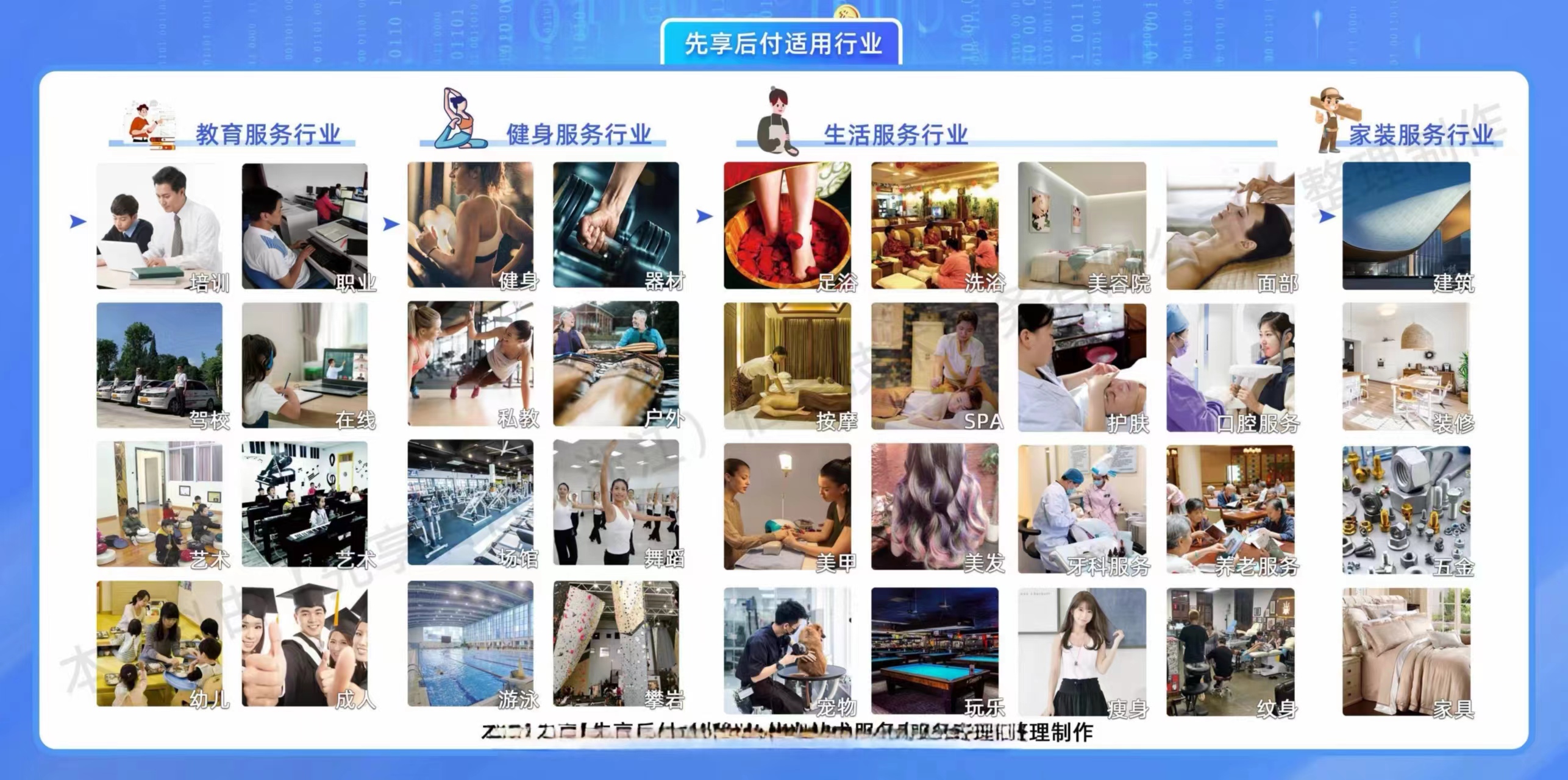 先享后付是针对教培、丽人、健身、装修、宠物等以预付费产品为主的行业,依托于支付宝底层数据结构体系推出的一款按约定付费的服务工具。商家可以通过系统判定客户的信用等级自主授权分阶段付费额度;授权成功后会员实际是以日付、周付、月付、季付等方式进行付费,降低客户消费门槛及消费压力,提高商家的成交转化率,将“无单变有单,小单变大单”