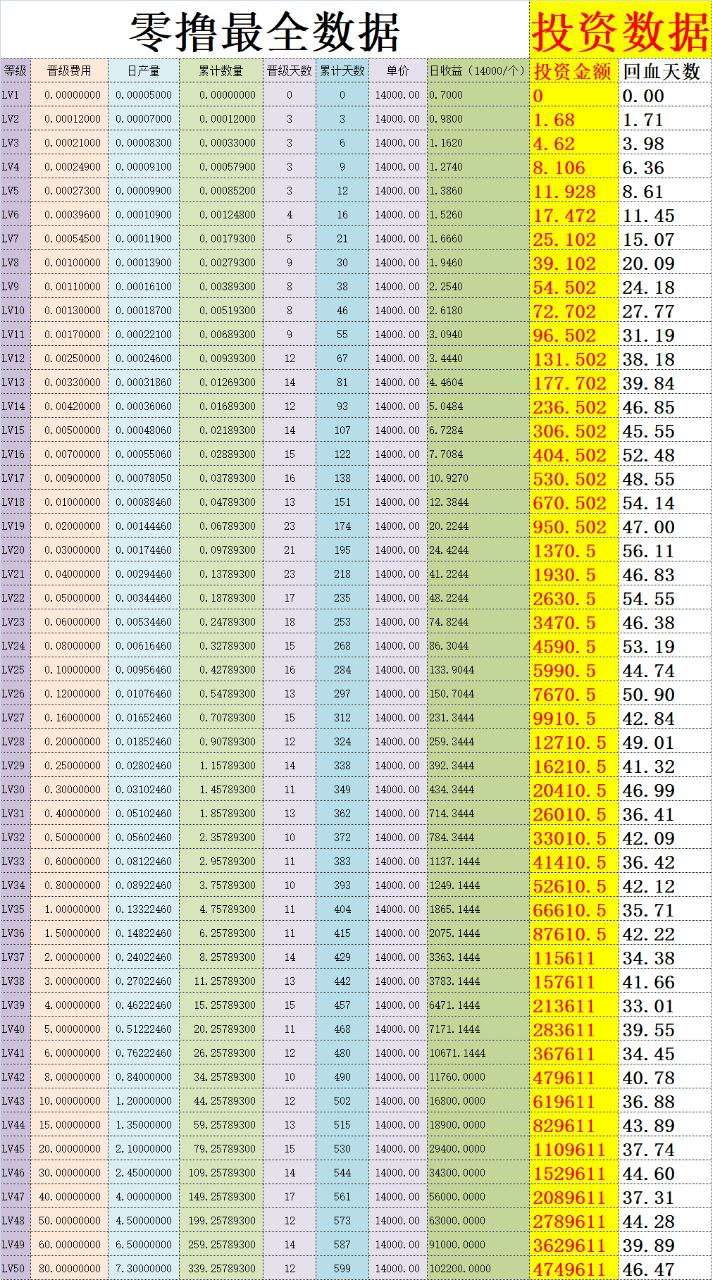 想零撸和投资都可以,近期不会跑路可以放心撸,想要投资的玩家我已经帮你们整理了一个表格如下,如果你们想投资也可以看看是否能接受