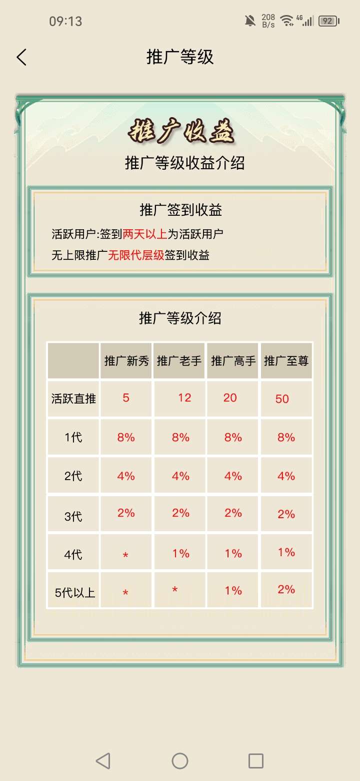 修为等级越高分红比例越高,每日分红就越多