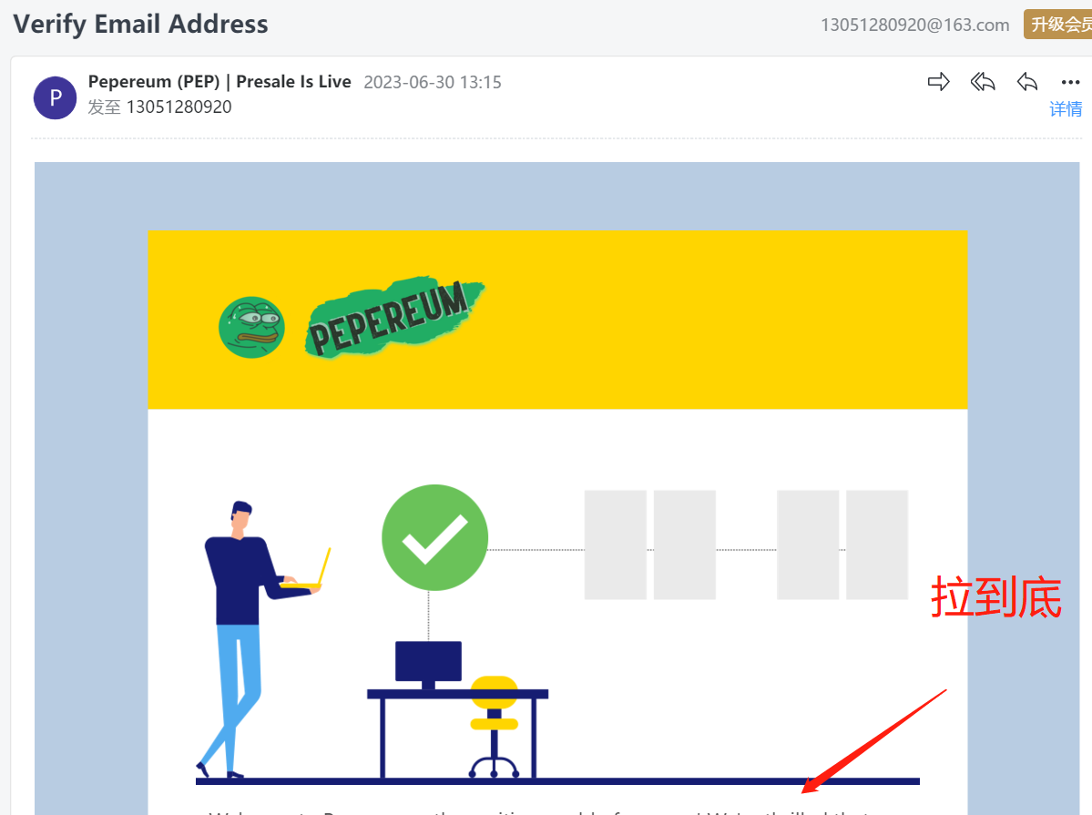 正文 空投活动-$PEP可免费获得5000万 PEP kingkong V评论者 /2023-06-30 15:04:24 /2640 阅读 0630 名称: Pepereum如何获得空投?链接直达合约地址:0xF3A153aa5c3b53A40E3BCeB6Af356fd8aa150677https://pepereum.vip/i-18779注册账号邮箱验证5000万 PEP到达账,空投完毕,就占时不管他。登录后注册邮箱,说明如下:
