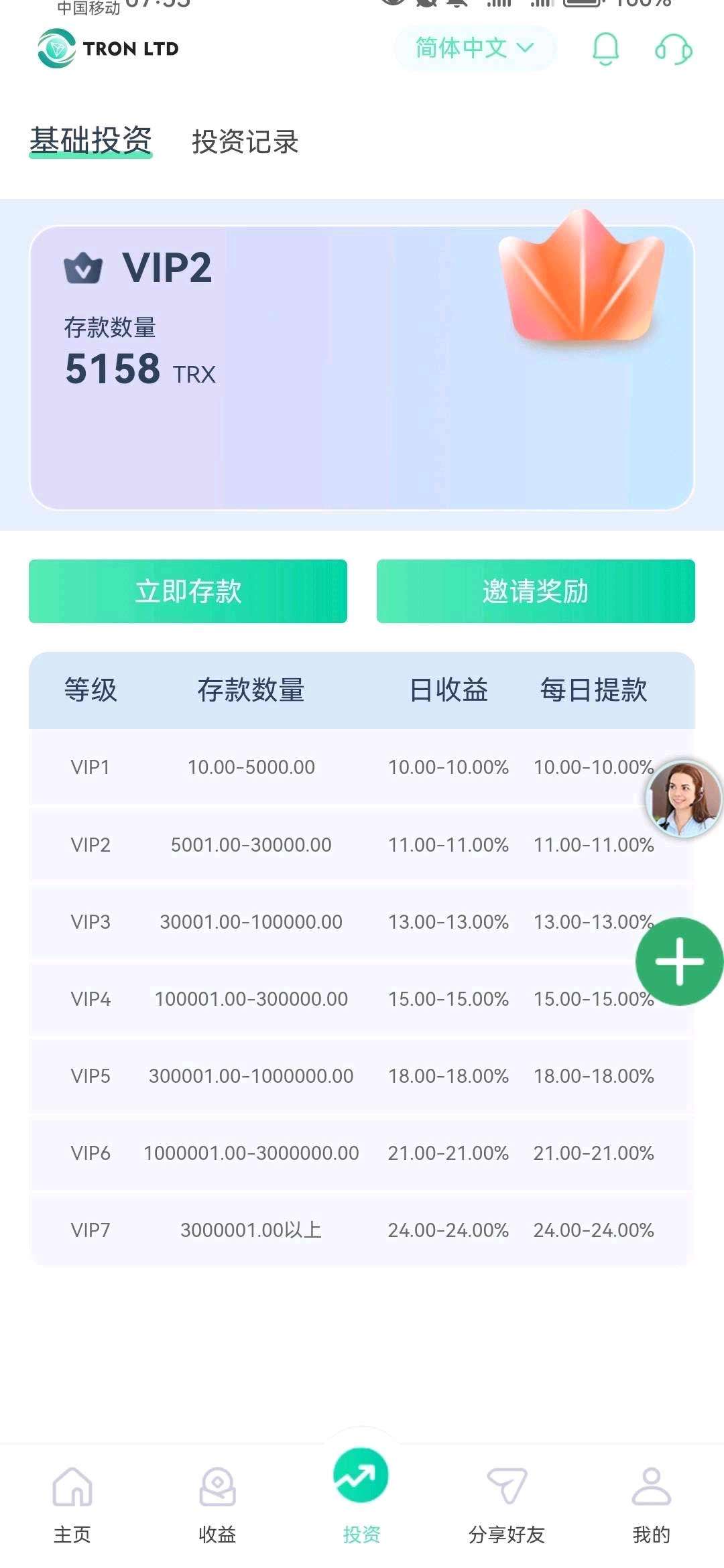 不用实铭☞只要充值10TRX激活账号,起步收益就是10%每天领取提现秒到账,不用审核,没有能量限制,看懂的抓紧上车。每天到账百分之10 的TRX,1个真实起提, 超实力,海外老外都在疯狂玩!