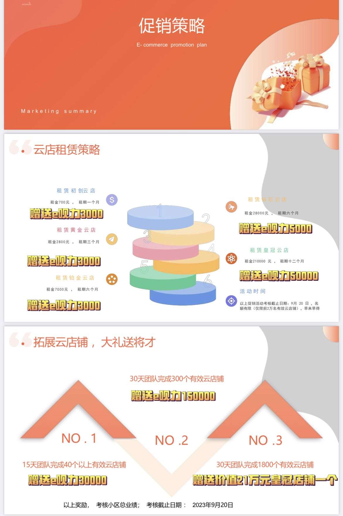 ①15天内团队完成40个有效云店铺赠e呗力30000