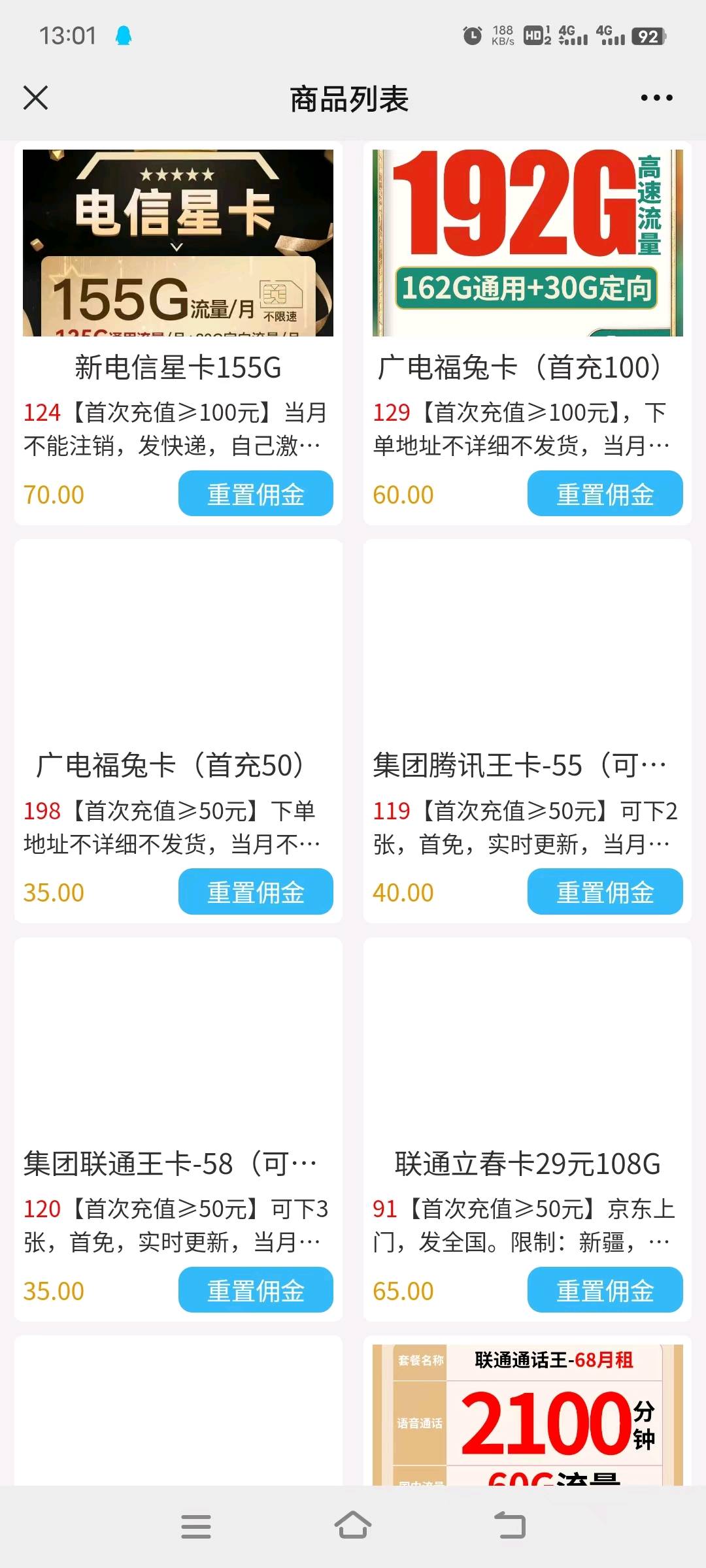 移动、联通、电信三网卡亮点很多,月租低,流量大,充话费送话费力度也很大,充50到账170元话费,充100到账270元话费。这种推广比较容易,因为用户和推广员双受益。佣金还是日结,有团队申请做代理,还有自己的独立后台,提现自由,做任务自由。有兴趣的可以联系我。