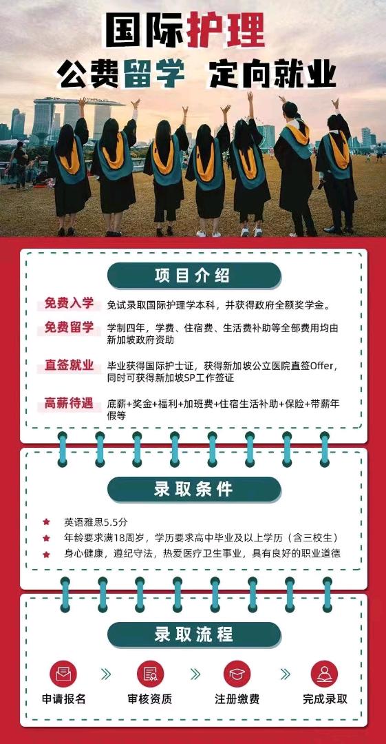 正文 公费留学,定向就业,合作招生 地推团队网 V评论者 /2023-07-05 17:01:22/3.53 K阅读/0评论 0705 新加坡公立医院委培护理学本科,上学既就业项目介绍1、免费入学,马来西亚医科学院,享受新加坡政府全额补助。2、免学杂费,住宿费,每月补贴生活费,学制四年,毕业获国际护士证,学历中留服认证。3、直签就业,获新加坡公立医院直签offer,同时获得新加坡SP工作签证。4、国门权威机构背书。合作要求有一定资源活宣传渠道收益利润每个学生不低于万元,费用说明合作共赢,无任何费用。扶持培训可实地考察,包括国内招生基地,马来西亚学校,新加坡医院。