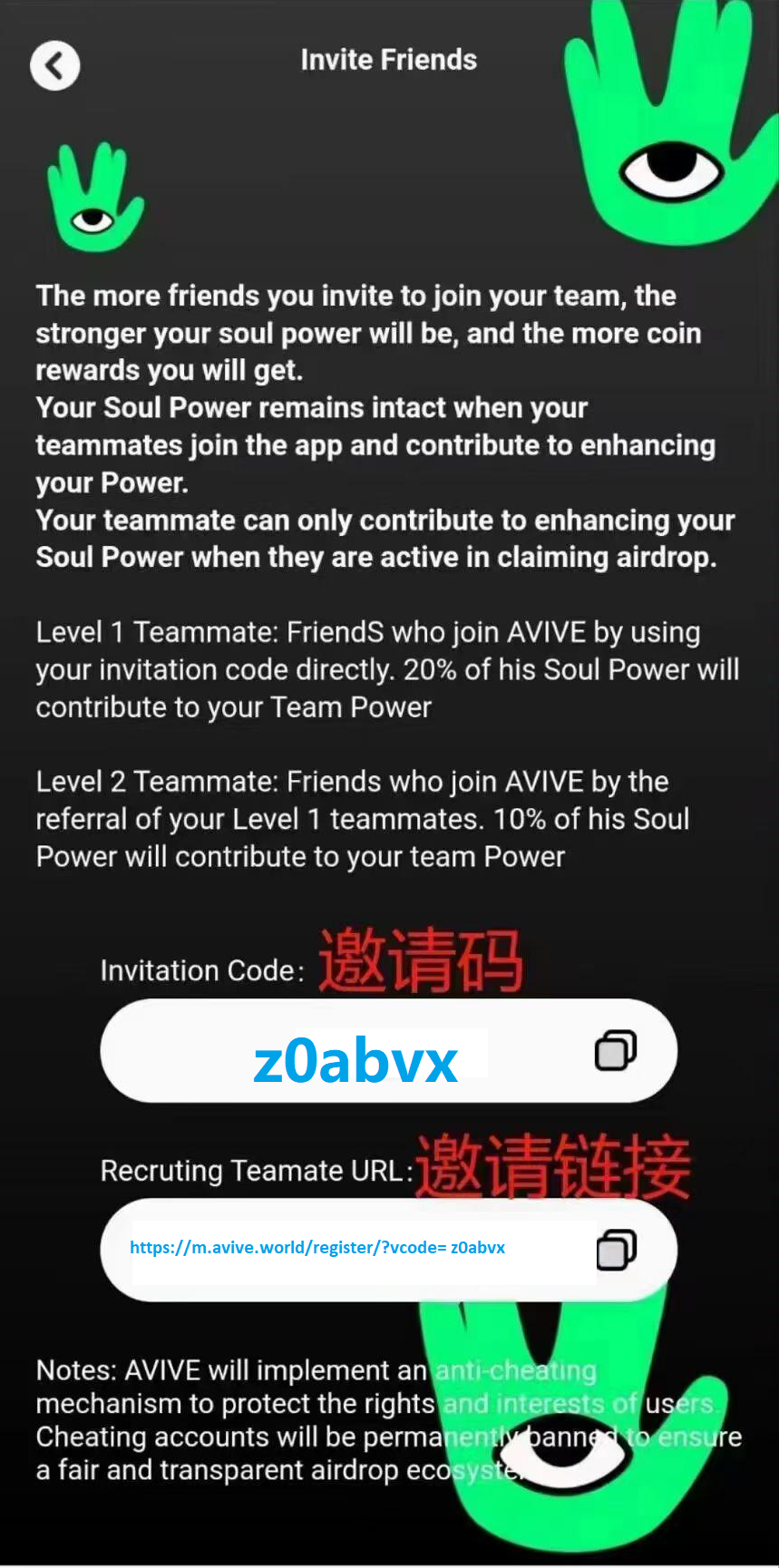 注册地址:https://m.avive.world/register/?vcode= z0abvx