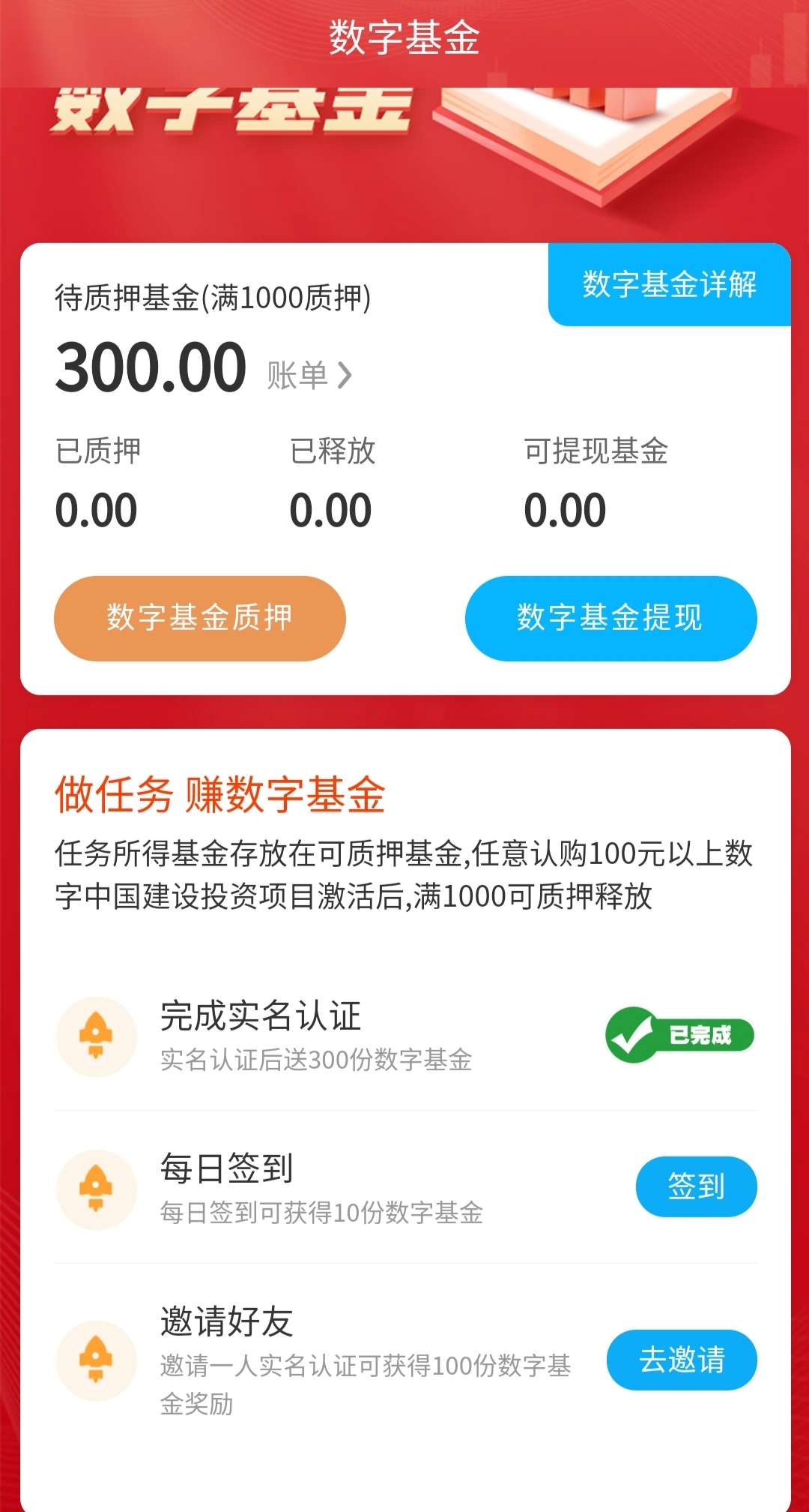 2、邀请直属用户一人实名认证可获得100份数字中国智慧养老数字基金奖励奖励。