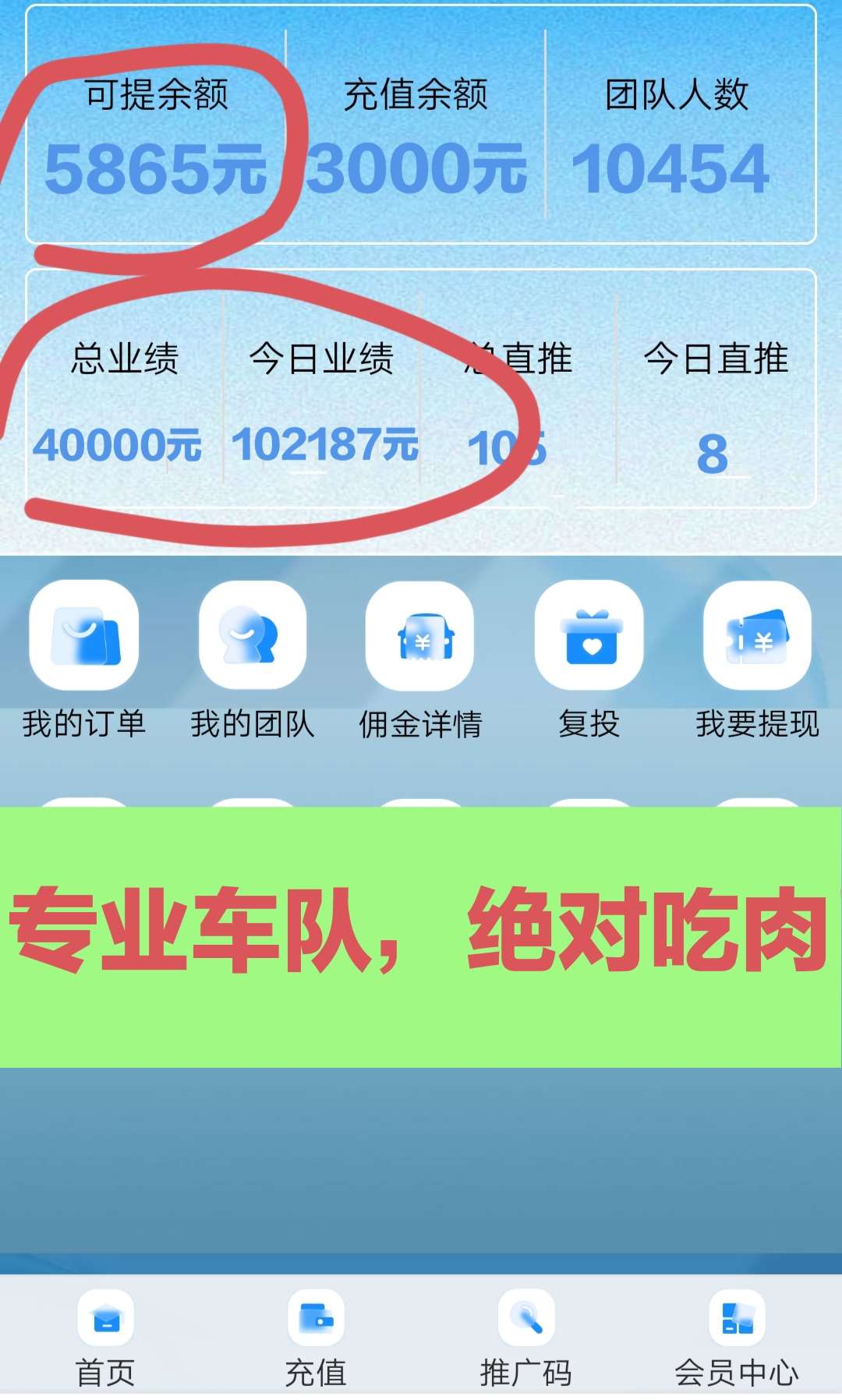 当天团队业绩5000元,均分2%