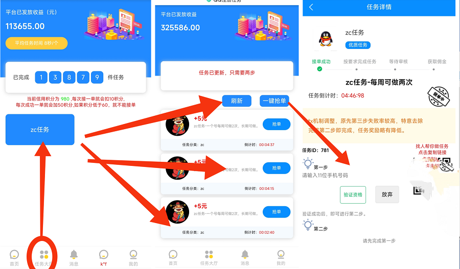 正文 牛赚,QQ辅z注册,每月两次单价高 q18548025545 V评论者 /2023-07-27 23:22:49/2.05 W阅读/0评论 0727 牛赚平台是一款辅助QQ注册的平台,每个手机号每周都可以操作两次,每次单价5元,手机号越多,获得的收益也就越高,平台内操作操作流程非常简单,并且平台还拥有三级佣金奖励模式,提现也有着超低的提现门槛,是一款非常不错的平台,提现到账速度也是非常快的,一般一个小时左右就可以到账了。1.浏览器扫描下方二维码进行下载。2.平台任务操作流程。3.平台拥有三级佣金奖励。更多首码项目加入首码扶持群。