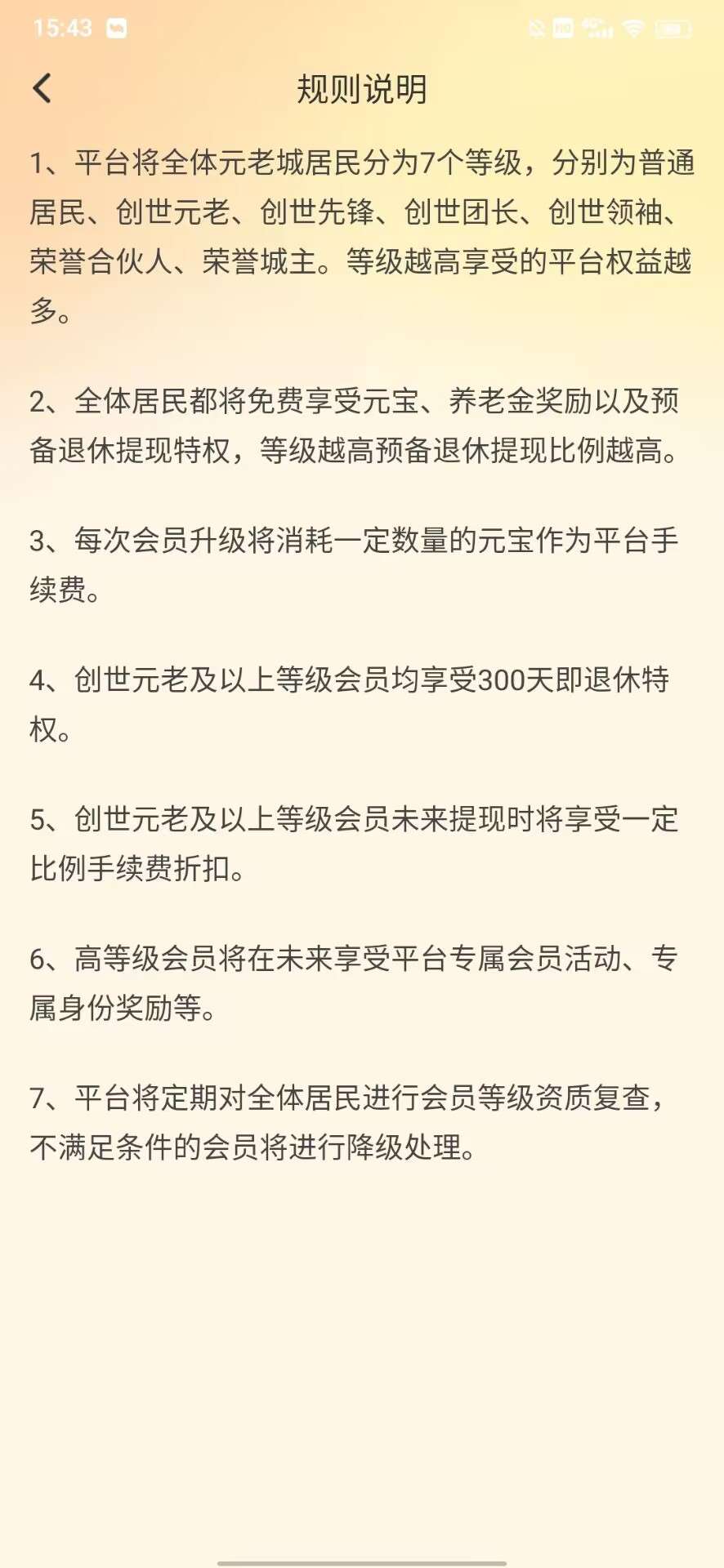 最新更新之后,推广人数达标使用元宝可以使用元宝提升会员等级,会员等级提升获得更多权益,最直观的是提升退休之前的提现比例。