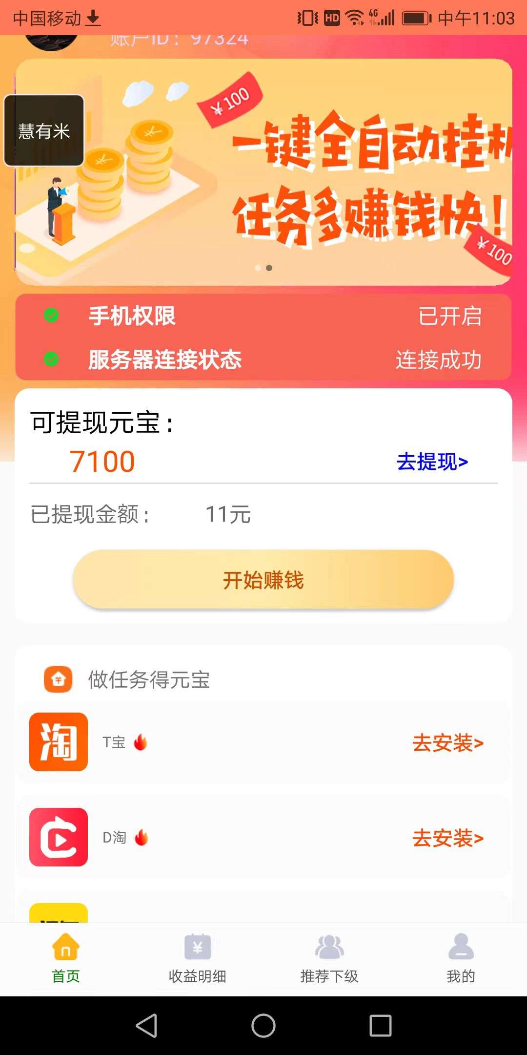 正文 慧有米视频自动点赞评论赚米,提无门槛,有提现图,已测试过 每天自动更新项目 V评论者 /2023-08-06 16:36:13/2.28 K阅读/0评论 0806 全网首码 慧有米 视频g机 单号20+每天 早上车早吃肉g机看视频一天20米,如图,我的今日g机收益已经10块了,一元起提现秒到新平台,人少抓紧冲,后边人多了肯定会降低平台主要g机项目 dy 哔哩哔哩 快手按照提示 打开权限即可开始赚米