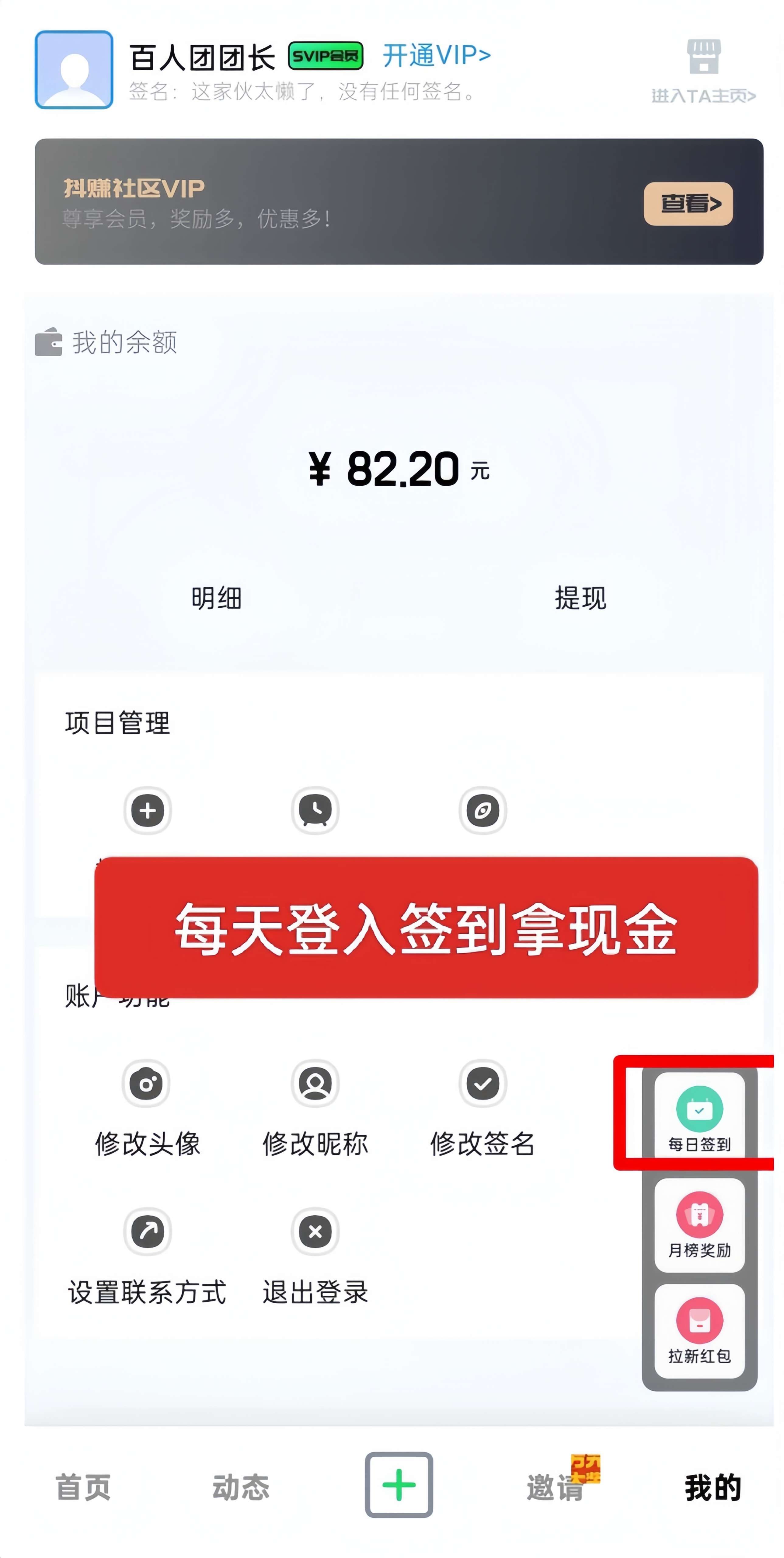 【抖赚社区】每天登录APP就有0.7元!0撸每天签到领红包!邀请好友可一起拆红包!