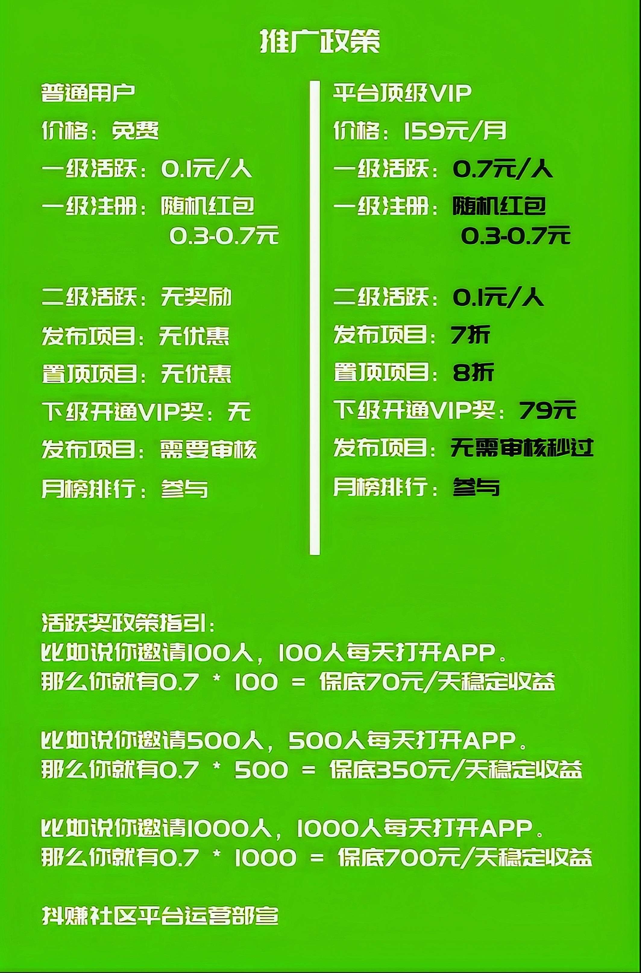一级0.7元/人,二级0.1元/人(好友打开一次APP,即算活跃)
