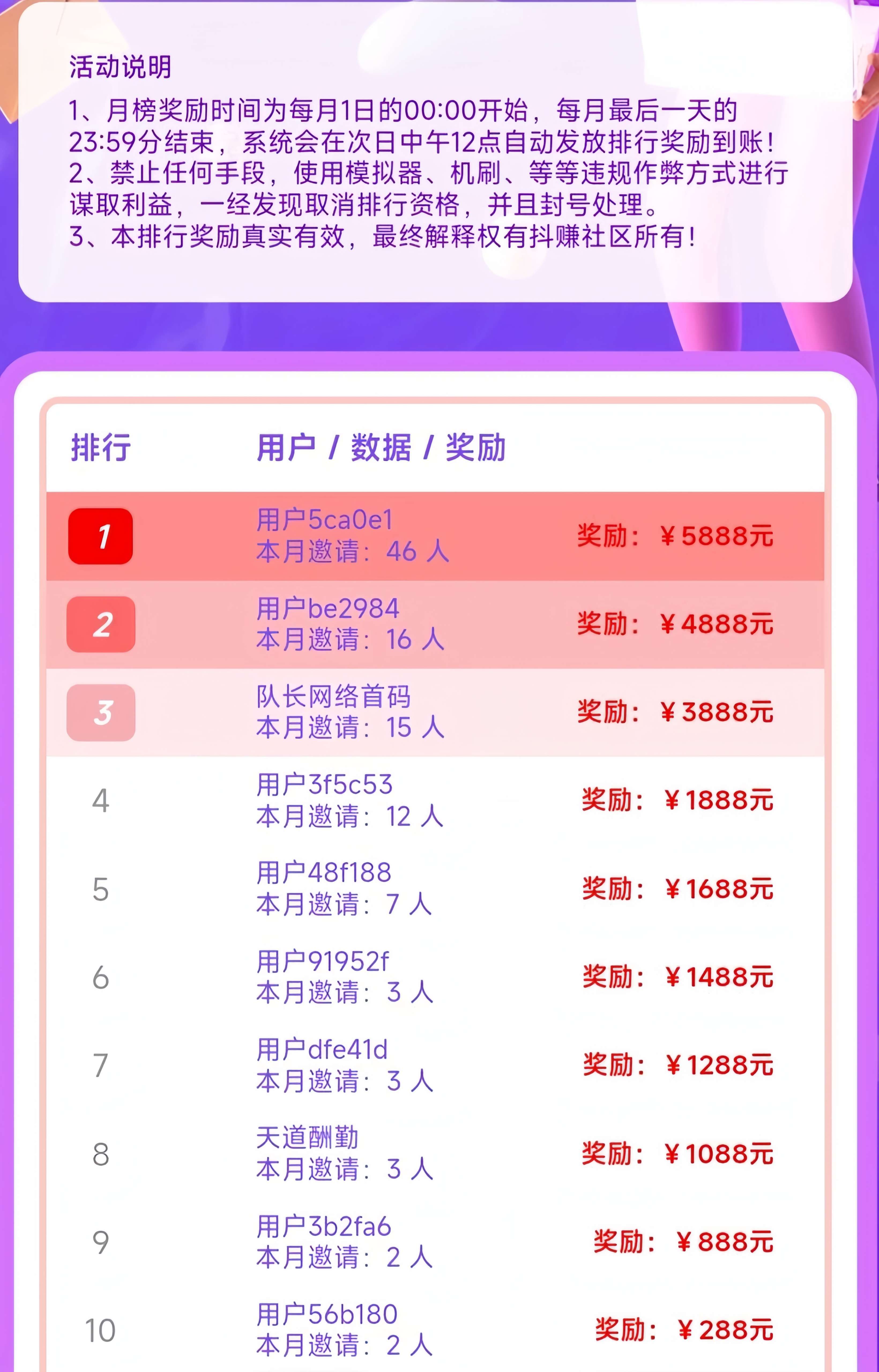 ④:推广月榜奖励: