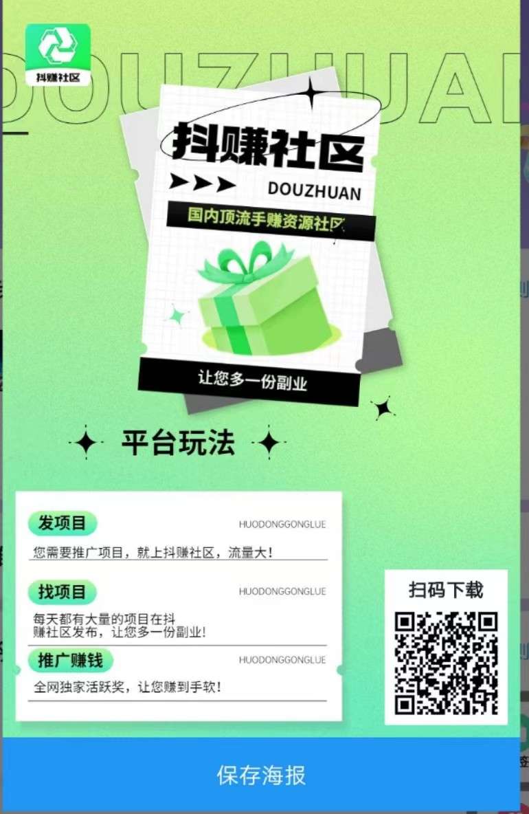 2、发项目:平台流量多,你如果有项目需要推广,需要人脉,可以发项目到抖赚社区实现人脉收益。