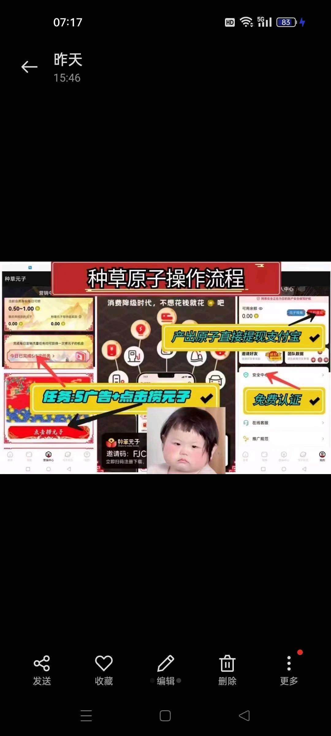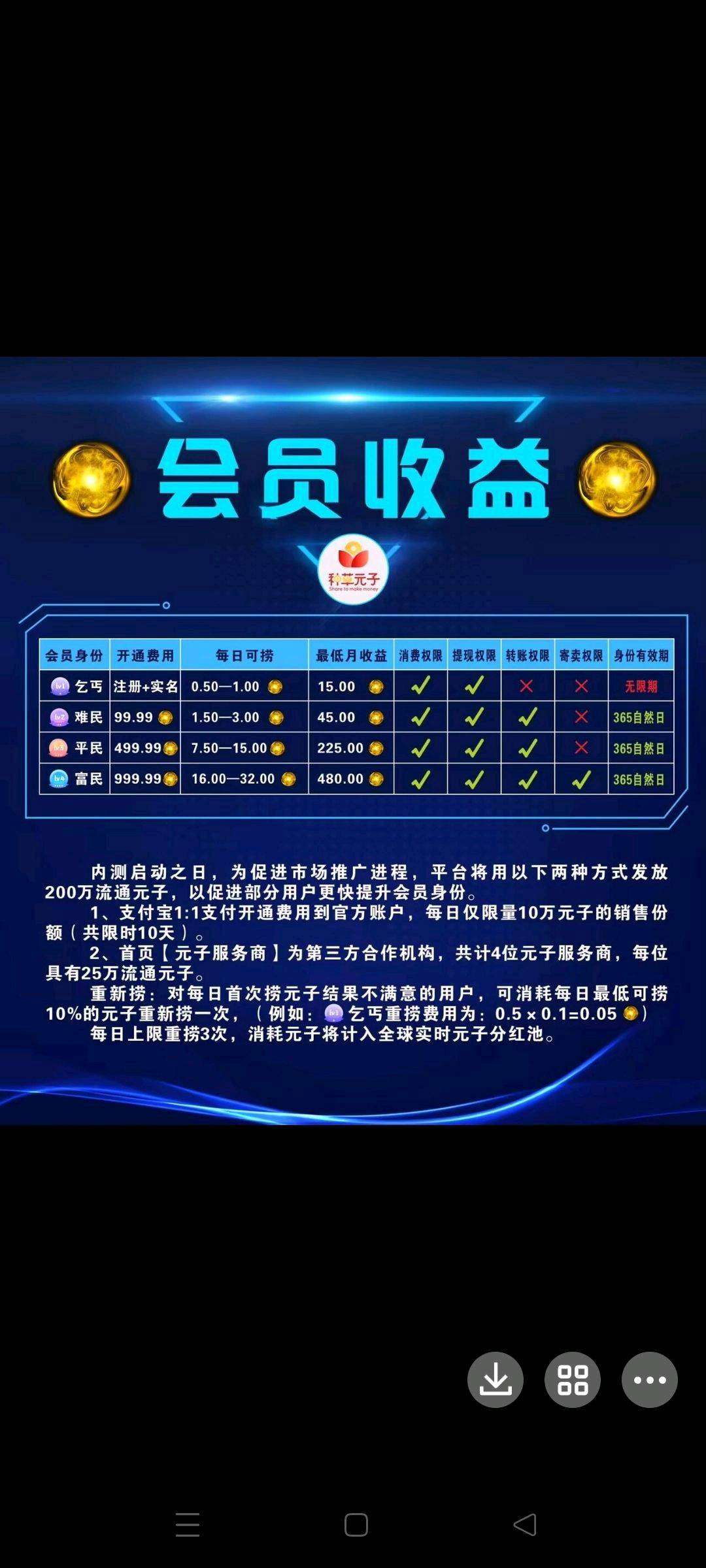 正文 【种草元子】注册送永久任务包产出直接卖 白小纯 V评论者 /2023-08-29 16:19:55/1.68 K阅读/0评论 0829 【种草元子】免费认证,注册送永久任务包产出直接卖,不用复头不用保留,产出元子直接提 只要平台在可以一直撸,10个起提现支付宝,零撸福利每天看5个广告可领0.5-1个元子,1个元子=1块,不是卷轴,随时可提。