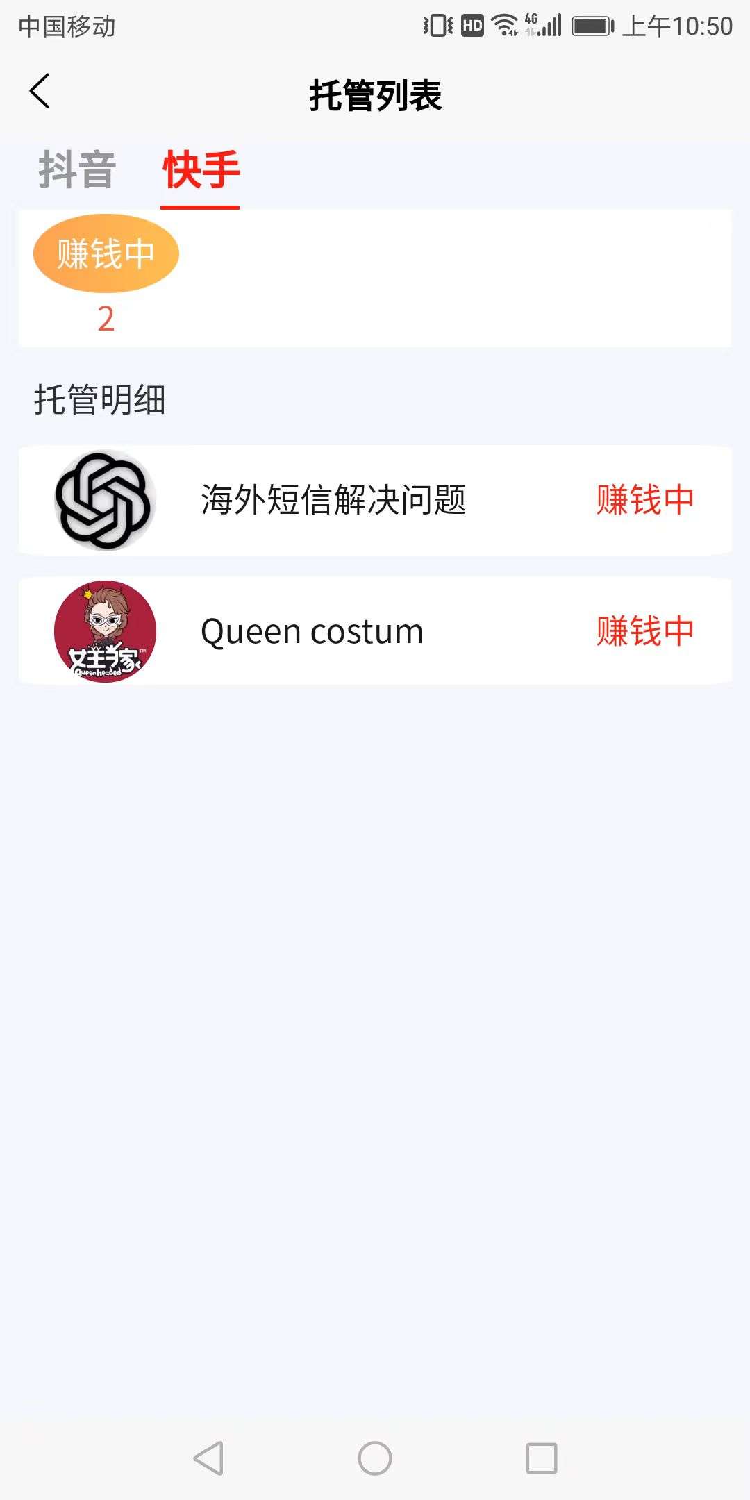 问题:按照每个托管账号计算。抖音快手都可以托管很多账号。