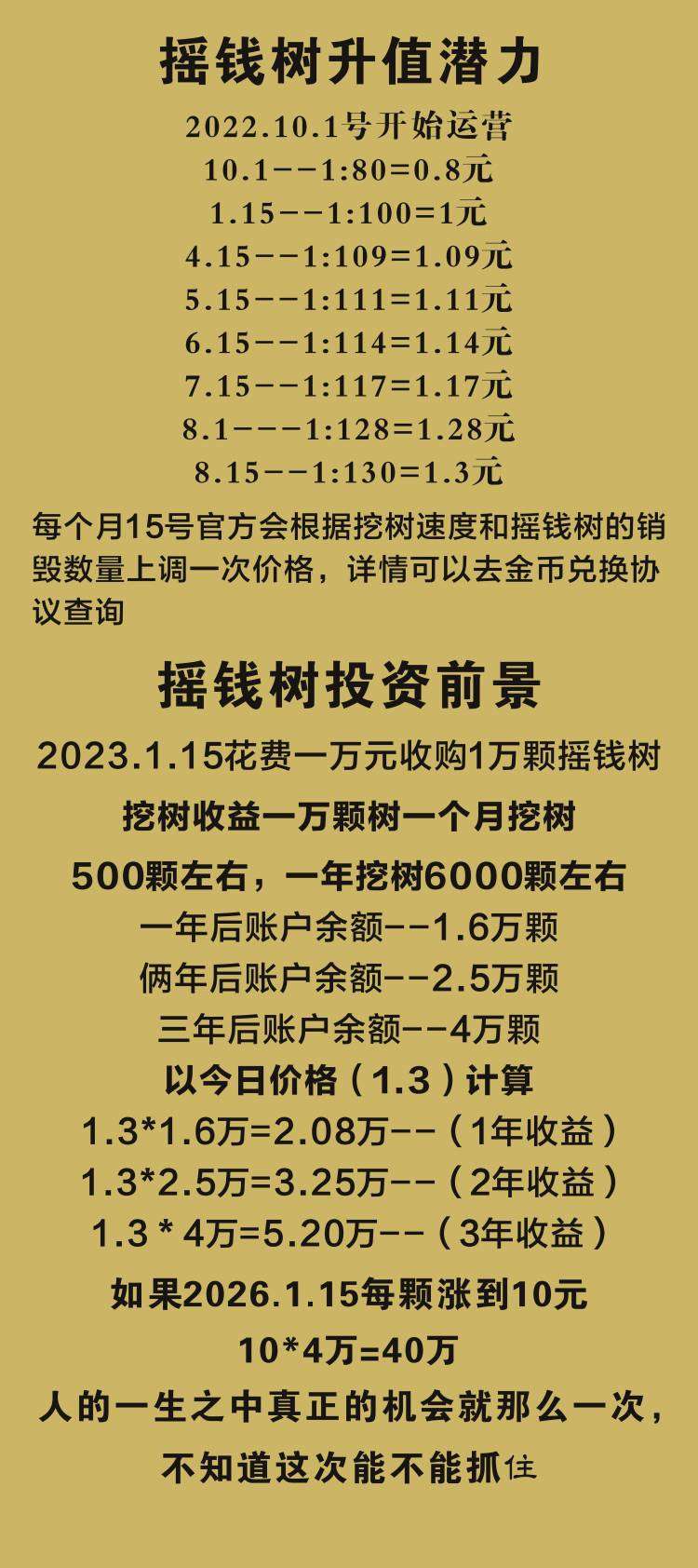 正文 摇钱树商城,注册送100颗摇钱树,相当于永久奖励 白小纯 V评论者 /2023-09-07 19:15:24/1.72 K阅读/0评论 0907 摇钱树商城,注册送100颗摇钱树,相当于永久旷机。摇钱树商城推广一个佣金高达5元秒变现永久0撸长期高价回收,现金补贴团队长摇钱树APP玩法和介绍注册赠送100颗摇钱树(永久有效)相当于一颗永久矿机一直可以产出变现直接复投(周期一天)产出即可卖每天登录,不用看广告,不用做任务,只要交易复投一次系统第二天本息到账,可复投可变现邀请码94019238