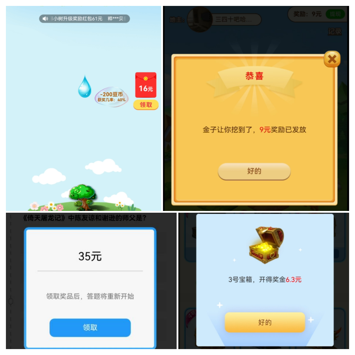 豆伴内置多种小游戏,随便点点即可获得现金奖励!每天和美女小姐姐一起玩游戏还能获得各种红包奖励,更有土豪BOSS天天发全网红包,玩到抢到就是赚到!