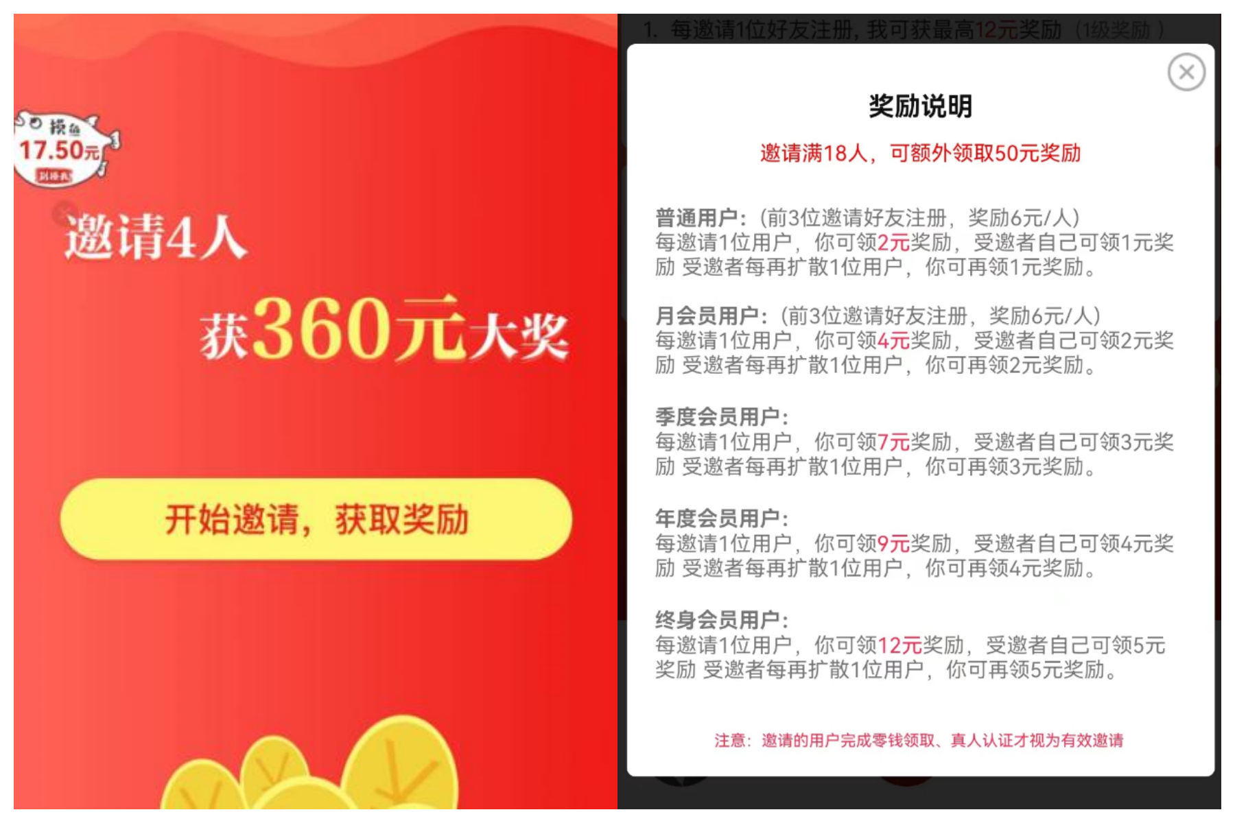 分享拉新也可获得超多奖励,每邀请一位好友完成注册即可获得最高12元,最低2元奖励!