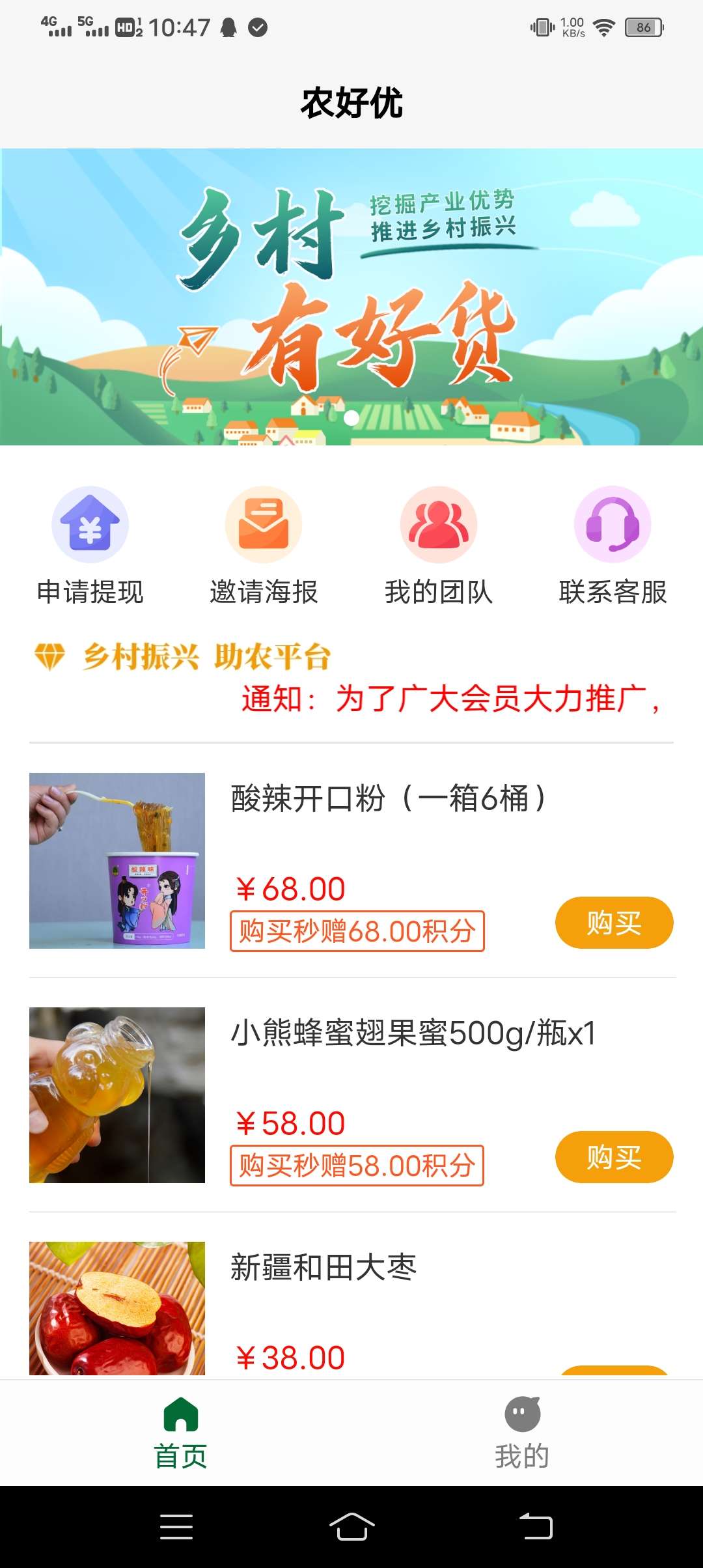 正文 农好优,已到账注册送99个积分,直接分红0.30到余额,分h 每天看广告签到10个得积分 白小纯 V评论者 /2023-09-13 16:01:45/2.18 K阅读/0评论 0913 农好优,已到账注册送99个积分,直接分红0.30到余额每天看广告签到10个积分,累计一天比一天分h多下级签到积分奖励:一级5%积分,二级2.5%积分下级实名积分奖励:一级10%积分,二级5%积分下级购物积分奖励:一级20%积分,二级10%积分芬红时间:每日凌晨0:00-4:00结算至余额芬红规则:100x0.003=0.3,同时扣除0.3积分积分累积越多每天分红越多,千分之三释放,满3提现秒到账!