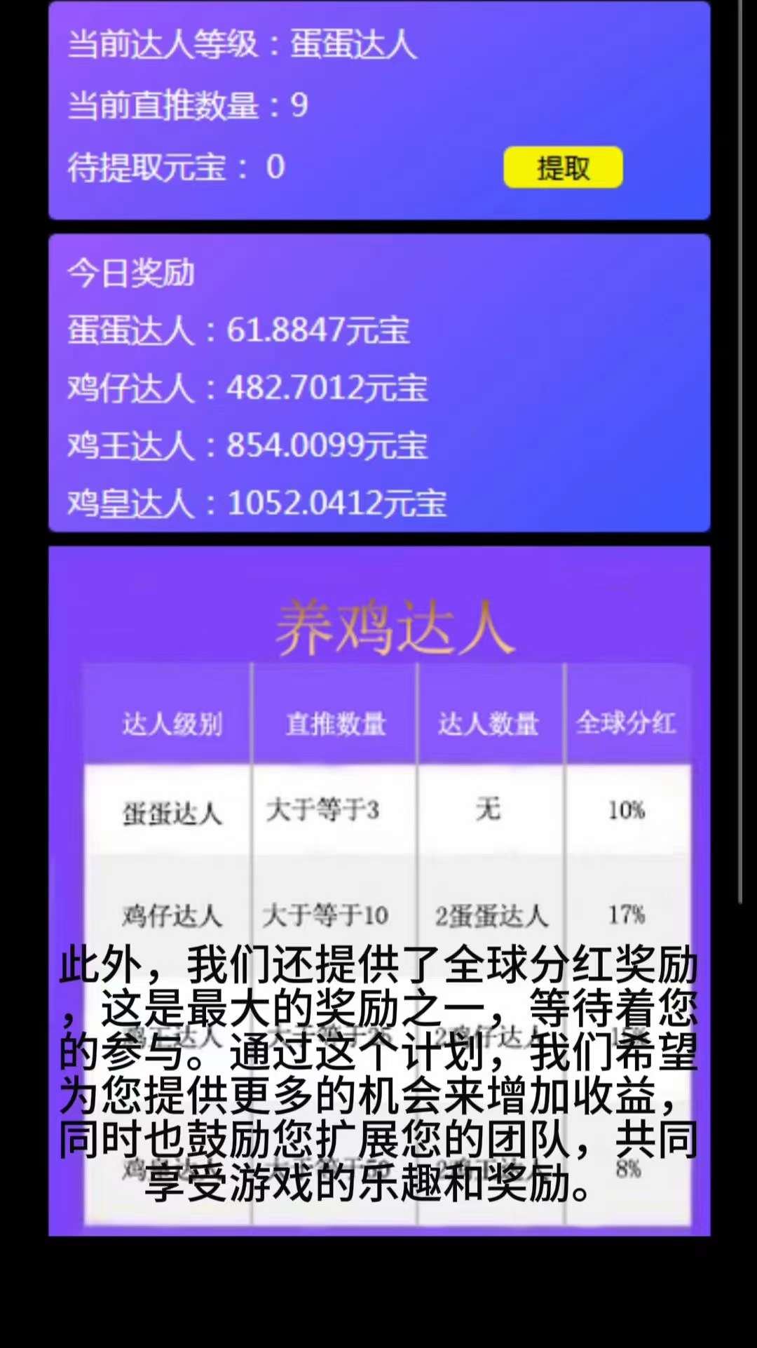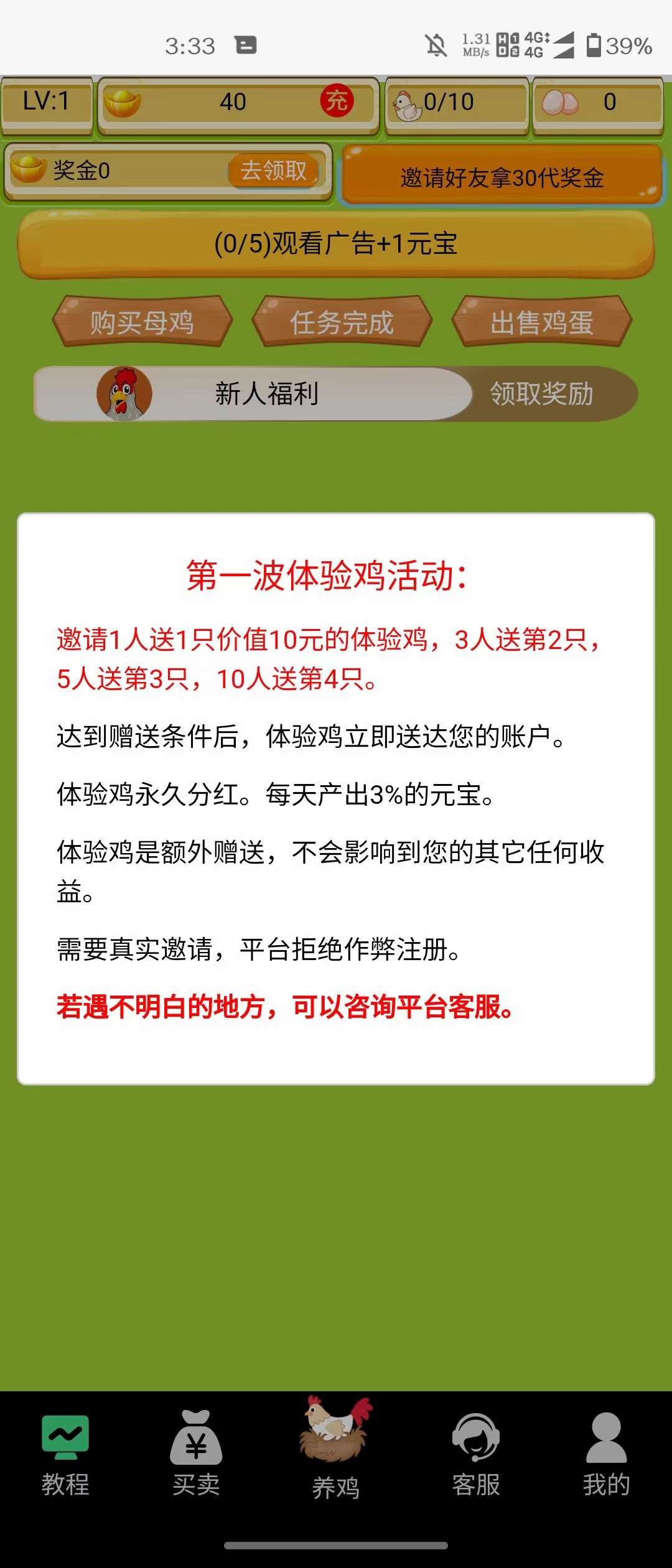 正文 养鸡吧首码,注册就送50元宝,聚宝修仙模式,分h模式 白小纯 V评论者 /2023-09-30 20:11:15/2.25 K阅读/0评论 0930 养鸡吧首码,注册就送50元宝,聚宝修仙模式,趣味创新模式,注册就有米,释放元宝,元宝可提支付宝,左下角得菜单可观看教程。有拉新奖励,分h模式,成为达人有专属奖励。还有大逃鸡小游戏。