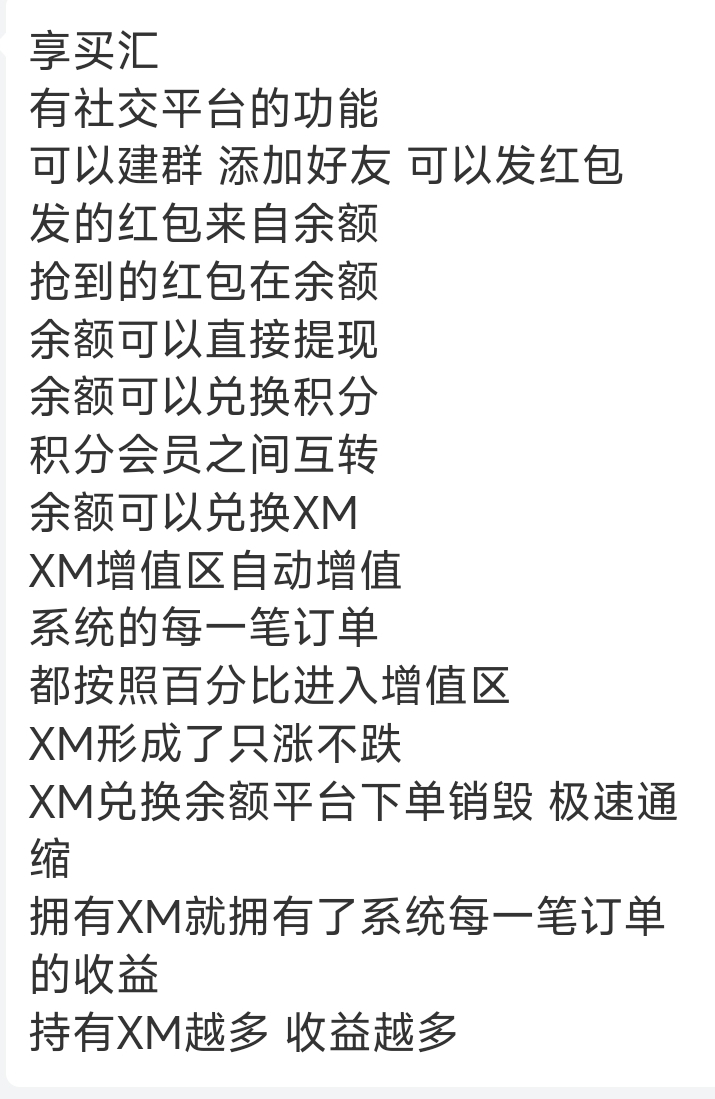 正文 提供新零售生态商城,招募首批合伙人,零投资长久项目 拉新推广怎么做代理 V评论者 /2023-10-16 13:30:48/2.69 K阅读/0评论 1016 享买汇绿色生活项目介绍享买汇新项木刚上线团队长待遇优厚 月挣2万起步1.0阶段 新零售商城,直推奖励,推广奖励,区域奖励提现奖励,全网分荭,循环复购奖励等2.0阶段 cps+新零售商城,提供更多团队长变现的渠道3.0阶段 cps+新零售商城+线下实体。赋能商家打造生态4.0阶段 区块链开发,公司上市合作要求有推广经验,会用手机收益利润年收入百万费用说明无加盟费扶持培训社群培训扶持,小白也能轻松开始