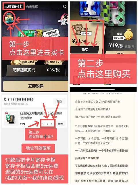 两种方式管道收益:第一种、实名认证,新人注册免费收益一月或本金147,猴卡即将涨价喽,一月回本,购7张无猿猴自动收入宝石,随时变现;几个月前2元多一个宝石,因太火爆,现已疯狂上涨7元多一个宝石,你细品!跟上节奏,赚钱就跟呼吸一样!!第二种、无需本金,扭兔单,靠每天免费开蛋升级战力自动收入宝石,随时变现。注册好后暂时不升级,因升级需要消耗7个猴子!!!