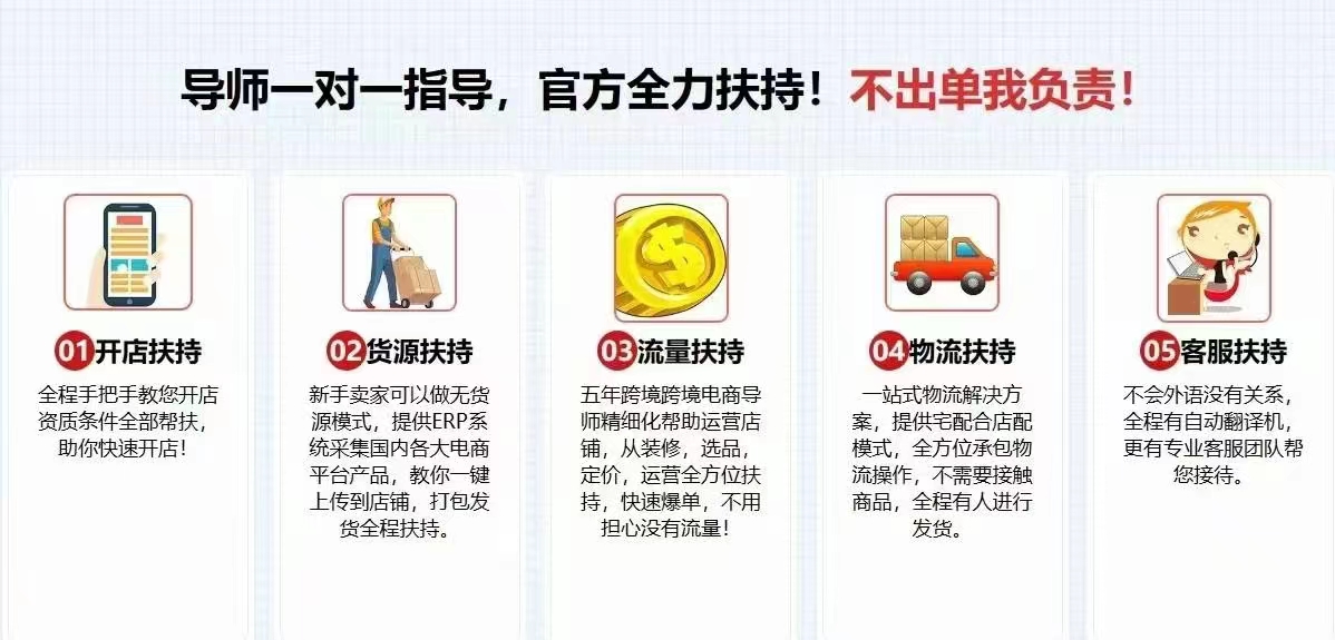跨境电商呢现在是大力扶持的一个项目,我们公司为了扩大市场规模和影响力现在推出了免费开店和老师一对一免费专人培训指导的活动,就是说您不需要花费太多时间。以及不需要花费一分钱就可以免费开店入驻,零投资,无需货源,压货,更不用担心发货销售,所有产品运营都由专业团队负责操作。